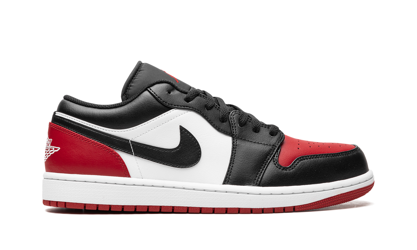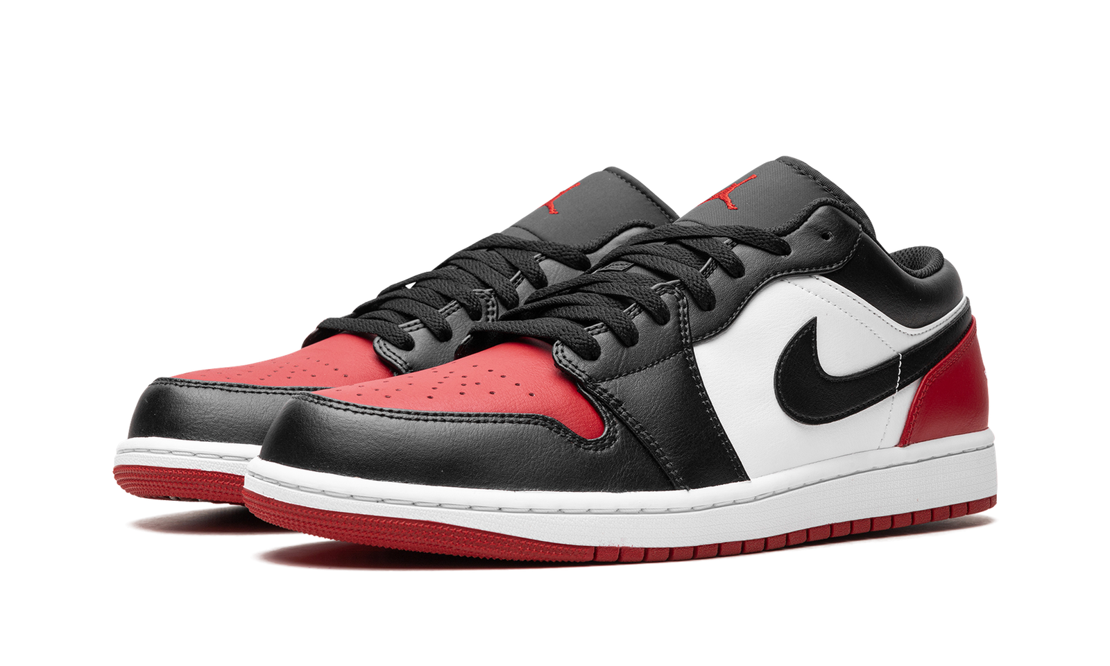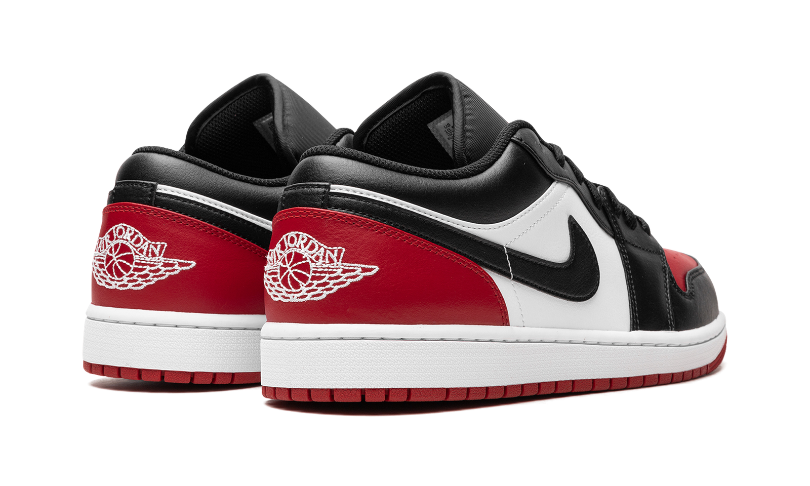The Air Jordan 1 Low “Bred Toe” is a colorway of Michael Jordan’s first signature shoe in the low-top silhouette that mirrors the colorway of a popular Air Jordan 1 High. Dressed in the team uniform colors of Jordan’s former basketball team, this low-top variation of the vintage basketball shoe replicates the color block of the “Bred Toe” Jordan 1 High from 2018. The “Bred Toe” in low-top form has a Gym Red perforated toe with contrasting black leather overlays on the toe cap, forefoot, and eyelets. Elsewhere, white leather appears on the mid-panel and Gym Red leather is found on the collar and heel. A black leather Swoosh resides on both sides and a white “Wings” logo is embroidered onto the heel. The black nylon tongue features a white Jumpman and black “23” branding is found on the lace overlay. Release date: September 18, 2023