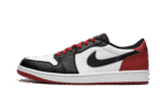 The Air Jordan 1 Low OG “Black Toe” is a colorway of the classic low-top retro basketball shoe that shows love to one of the model’s original styles. The “Black Toe” was an original colorway of the Air Jordan 1 High in 1985, and was worn by Michael Jordan with the Chicago Bulls during his rookie season in the NBA. Here, the colorway is transferred onto the Jordan 1 Low OG. The shoe features a white leather base with black leather overlays on the toe cap, forefoot, and eyelets. A black leather Swoosh logo appears on the sides. Varsity Red leather can be found on the heel, as can a black “Wings” logo on the heel tab. Classic “Nike” and Swoosh branding appear on the tongue tag. A white rubber midsole and black rubber outsole complete the look. Release date: July 28, 2023