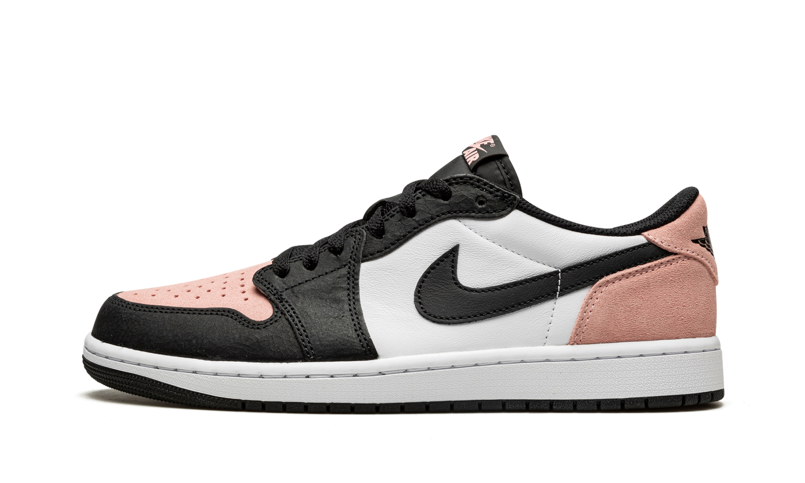 The Air Jordan 1 Low OG “Bleached Coral” is a clean look for the original version of the retro basketball shoe primed for the warm weather season. The “Bleached Coral” was released in July 2022 and is a summer-ready look for the version of Michael Jordan’s first signature shoe that replicates the appearance of its original low-top design. The shoe features a “Black Toe” Air Jordan 1 inspired look with its Bleached Coral cracked leather toe and contrasting black cracked leather toe cap and forefoot overlays. White leather appears on the mid-panel and a black leather Swoosh is found on either side of the shoe. Release date: July 2, 2022