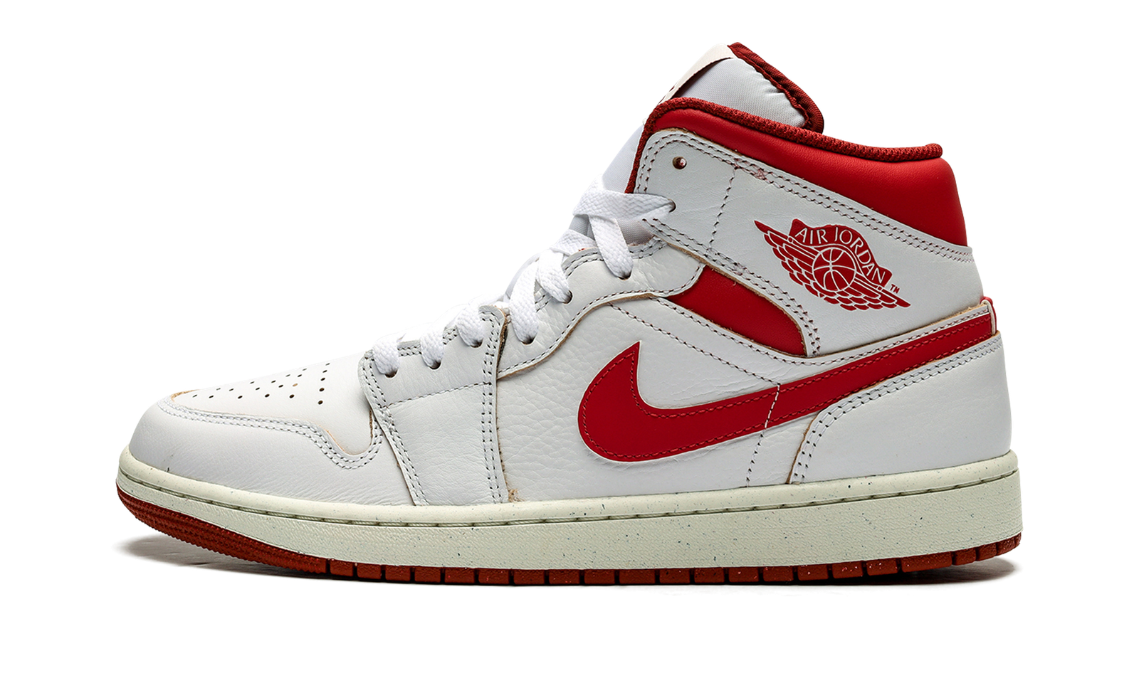 The Air Jordan 1 Mid SE “Dune Red” is a colorway of the casual mid-top shoe with red details. As classic a look as any for the popular Jordan 1 Mid model, the “Dune Red” features a white leather upper with Dune Red Swoosh branding on either side, and Dune Red “Wings” detailing on the collar. The deep red hue also appears on the collar underlay, as well as on the Jumpman and “Air” branding on the Sail-colored tongue tag. Underfoot, a Sail rubber midsole and a red rubber outsole complete the design. Release date: January 20, 2024