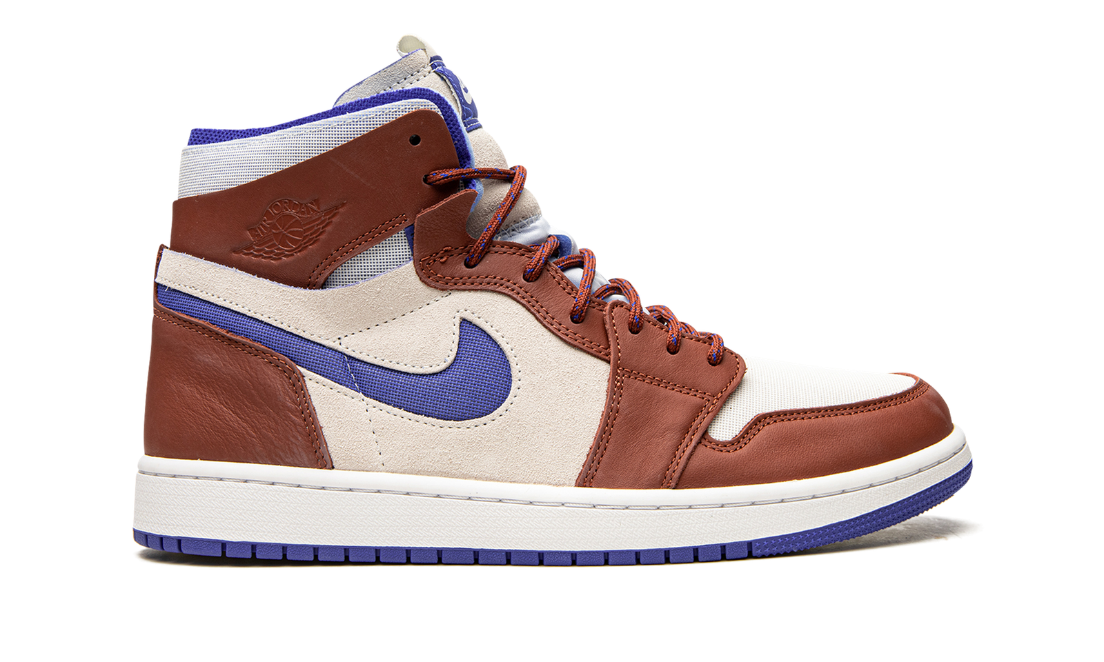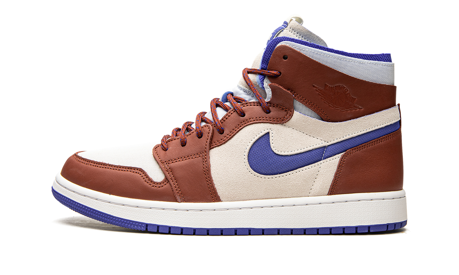 The Women’s Air Jordan 1 High Zoom CMFT “Redstone” is another exploratory look for the women’s edition of the modified version of Michael Jordan’s first signature shoe. The Jordan 1 Zoom CMFT is an alternative to the retro basketball shoe complete with even more padding on the collar than the standard Air Jordan 1, Zoom Air technology in the midsole, and deconstructed panels. The “Redstone” features a Sail canvas toe and cream-colored mid-panel. Redstone leather overlays appear on the forefoot, eyelets, collar, and heel. A Hyper Royal Swoosh is found on either side and a “Zoom Air” logo appears on the tongue tag in place of the Air Jordan 1’s original “Nike Air” text. Responsive Zoom Air cushioning replaces the popular high-top sneaker’s standard Air unit in the sole.