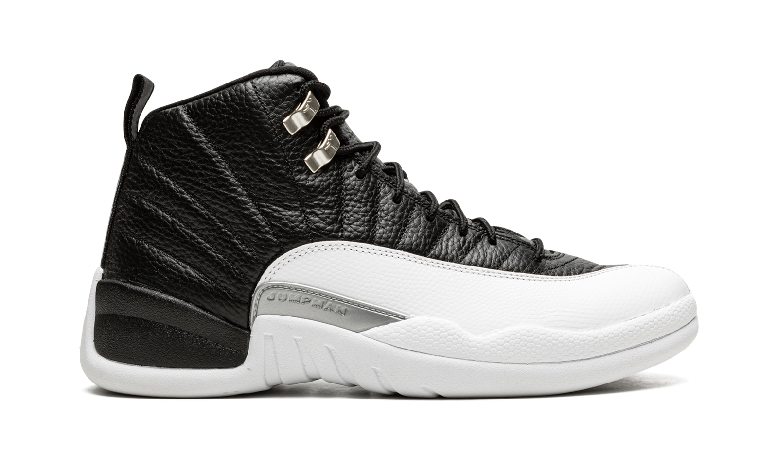 The Air Jordan 12 “Playoffs 2022” is a February 2022 release of an original colorway of the retro basketball shoe that was worn by Michael Jordan during the 1997 NBA Playoffs. An All-Star Weekend 2022 release, the Jordan 12 “Playoffs” celebrates the shoe’s 25-year anniversary in spectacular fashion as the modern incarnation of the shoe is a one-to-one remake of the original version from ‘97. The shoe features a black leather upper with contrasting Metallic Silver eyelets. Textured white leather is found on the toe, mudguard, and midsole. A silver “Jumpman” plate appears on the branding plate on the lateral side of the shoe. The black leather tongue displays a red embroidered Jumpman and “Two3” branding. Red “23” and “Jordan” branding can be found on the back of the black rubber midsole and heel, respectively. Overall, the February 2022 release of the Air Jordan 12 “Playoffs” is consistent with the original version from 1997. Release date: February 19, 2022