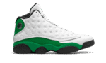 The Air Jordan 13 “Lucky Green” draws favorably from the team uniform colors of one of Michael Jordan’s fiercest rivals during his playing career, the Boston Celtics. In the spirit of Ray Allen’s Jordan 13 PE, this “Lucky Green” colorway displays the luck of the Irish throughout its design, beginning with a green nubuck on the mudguard, heel, and collar. The rest of the upper is outfitted in white leather with dotted embroidery. Branding hits include a black Jordan tag with green lettering on the throat, an embroidered green Jumpman on the white leather tongue, and a holographic emblem on the collar. A black liner and black midsole walls finish off the look. Release date: September 26, 2020.