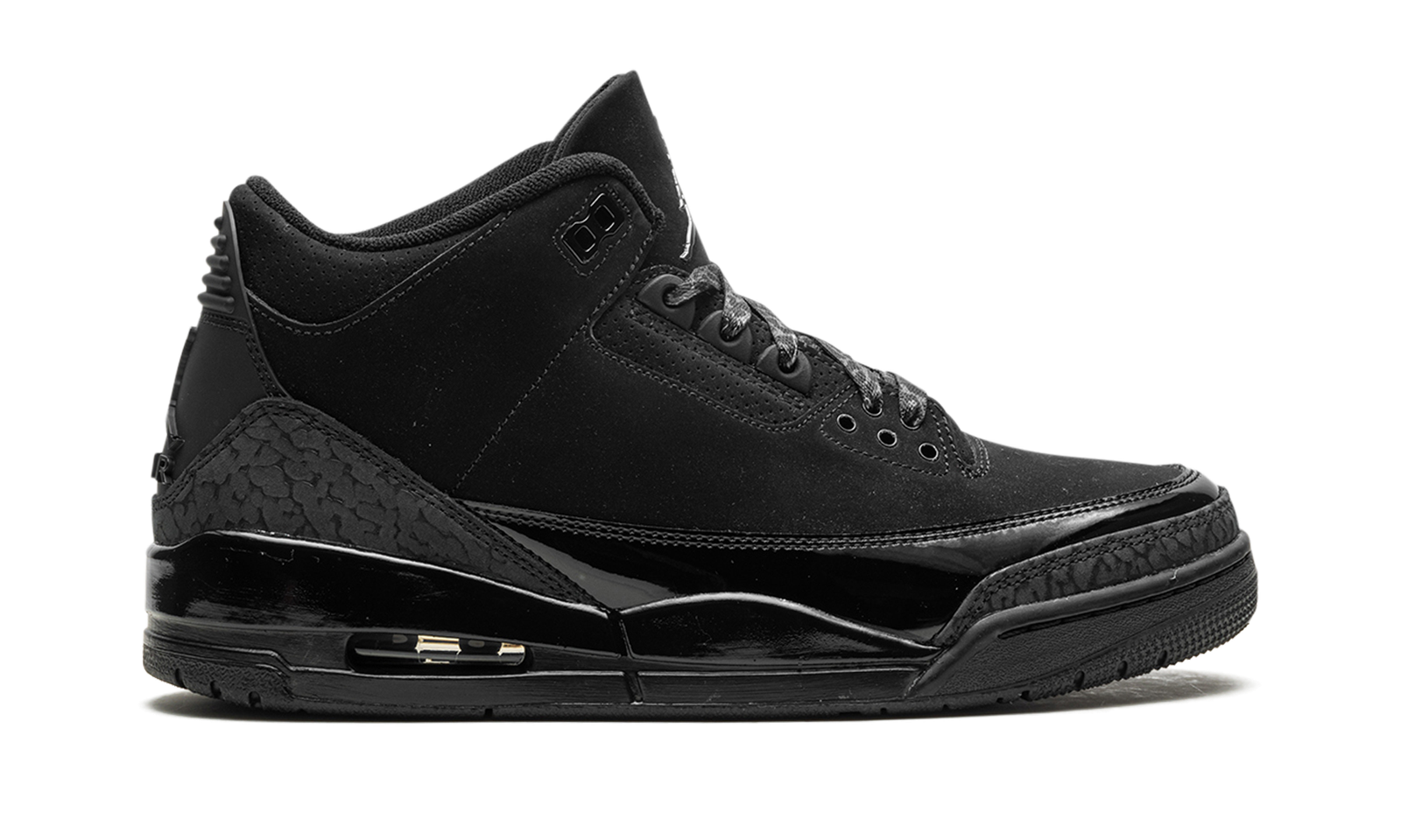 The Air Jordan 3 “Black Cat” is a stealth, all-black colorway of Michael Jordan’s third signature sneaker. The shoe has all of the details that Jordan 3 fans love, including the elephant print around the heel and toe, and the exposed Air cushioning unit. The AJ3 “Black Cat” also features patent leather accents that help the shoe really stand out.