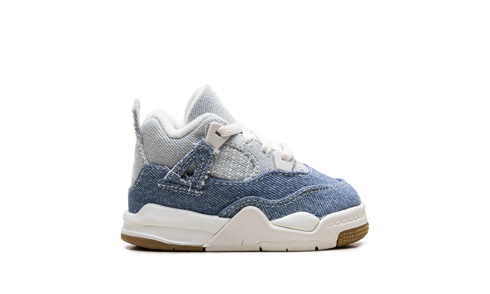 A bold denim look for the youngest fans! The Air Jordan 4 TD “Denim Worn Blue” takes Michael Jordan’s iconic fourth sneaker and re-engineers it in durable textile denim for Toddler sizes. It features a unique two-toned denim upper—a mix of light and dark blue—with visible contrast stitching replacing the traditional mesh. Subtle gold accents and a white foam midsole with Air cushioning complete this rugged, heritage piece, ensuring style and comfortable support for small, active feet.