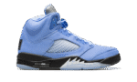 The Air Jordan 5 “UNC” is a colorway of the retro basketball shoe in a colorway inspired by Michael Jordan’s alma mater, the University of North Carolina. The “UNC” Jordan 5 is not affiliated with the UNC Tar Heels, but nonetheless draws inspiration from the school and its college basketball team. The upper is designed in a University Blue nubuck construction with translucent netting on the tongue and mid-panel. A Jumpman is embroidered on the reflective Metallic Silver tongue. The heel is updated with a Team Jordan patch stitched on each shoe, while the model’s signature icy clear outsole is paired with a black midsole that features silver shark tooth detailing. Release date: March 4, 2023