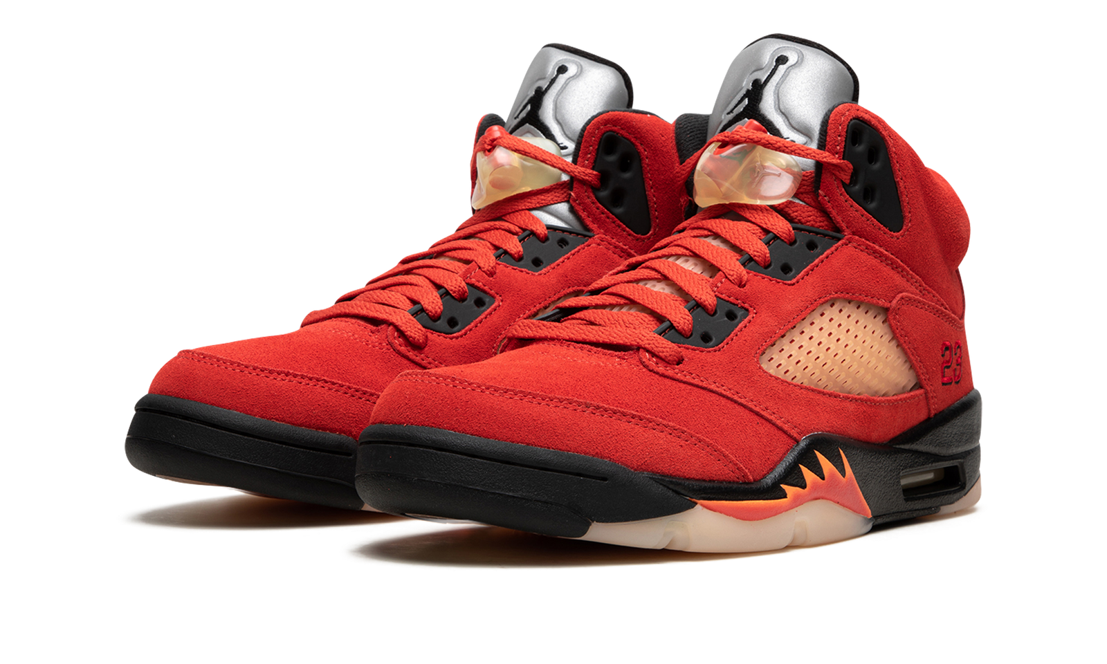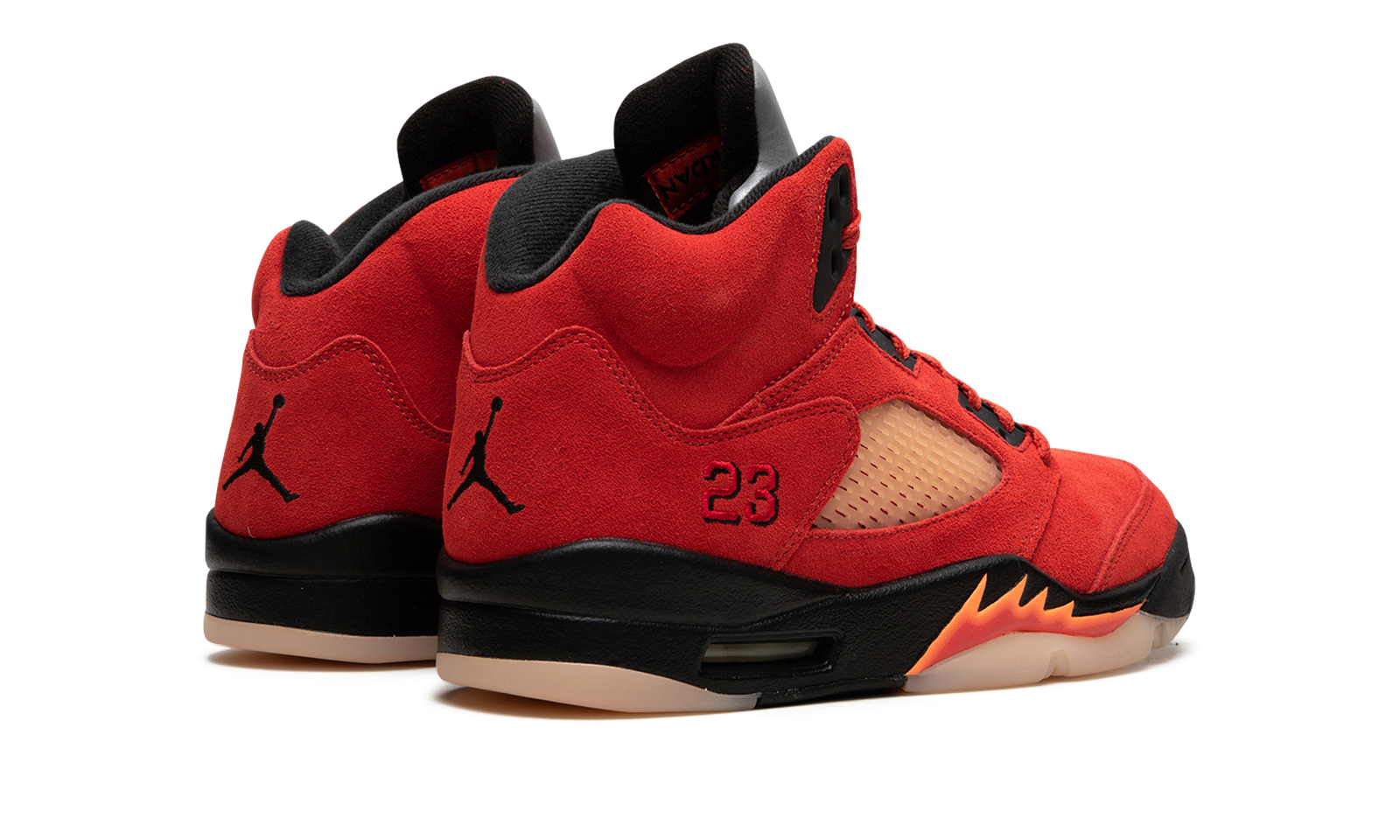 The Women’s Air Jordan 5 “Mars for Her” is a women’s-exclusive colorway of Michael Jordan’s fifth signature shoe that is loosely inspired by the Jordan 5’s “Raging Bull” style as well as Mars Blackmon, the sneaker-obsessed character played by Spike Lee in early commercials for the shoe. The “Mars for Her” features a Martian Sunrise-colored suede construction with translucent netting on both the tongue and mid-panel. Tonal “23” branding is embroidered on the lateral side of the heel. The number is a reference to the Player Exclusive Jordan 5 worn by Jordan with the Chicago Bulls in the NBA. A black Jumpman is found on the heel and on the reflective tongue. Overall, the Women’s Air Jordan 5 “Mars for Her” definitely has a strong vibe inspired by Mars, the Red Planet. Release date: January 14, 2023