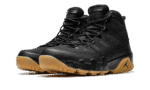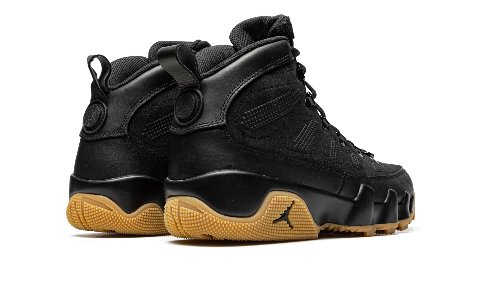 The Air Jordan 9 Boot “Black/Gum” is a November 2021 release of Michael Jordan’s ninth signature basketball shoe recrafted as a winter boot. Originally released by Jordan Brand in 2017, the Jordan 9 Boot in “Black/Gum” returned as part of Jordan’s Holiday 2021 release cycle, and is a one-to-one remake of the original style. Inspired by Nike’s Special Field Boot, the Jordan 9 Boot has a black suede base with tonal leather detailing on the mudguard that spans the toe up to the collar. Both details have been treated with a water-resistant coating. Boot-inspired metal eyelets and a gusseted tongue provide a rugged look. A tonal “globe” emblem is found on the heel. The rugged sole with upgraded tread for inclimate weather is constructed in gum rubber. Release date: November 24, 2021