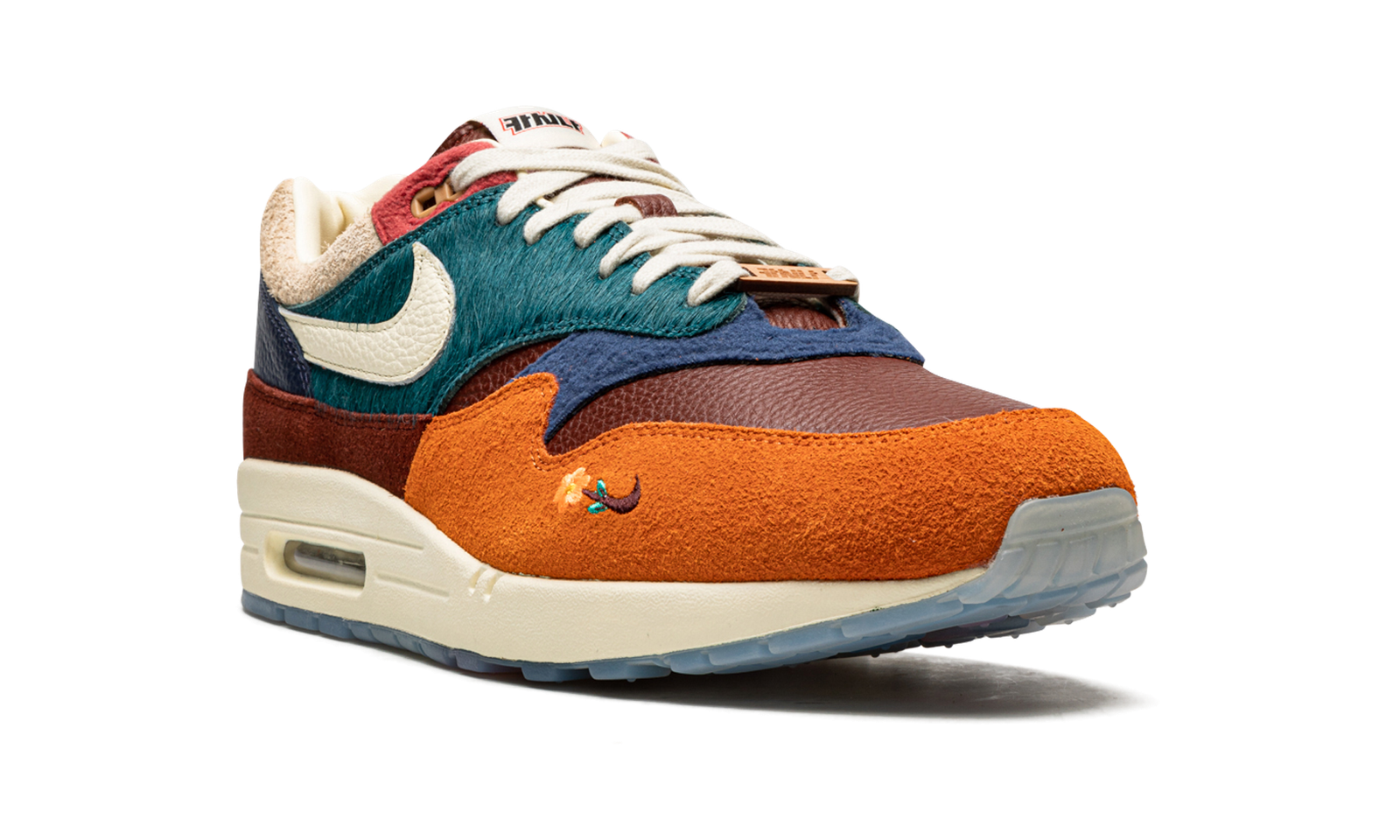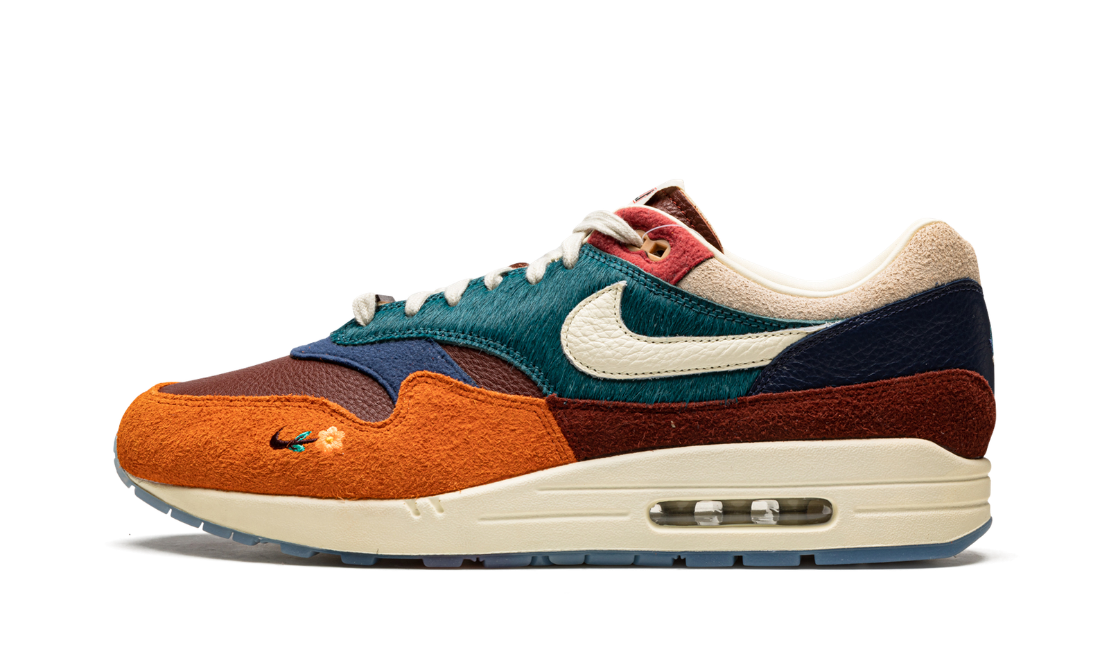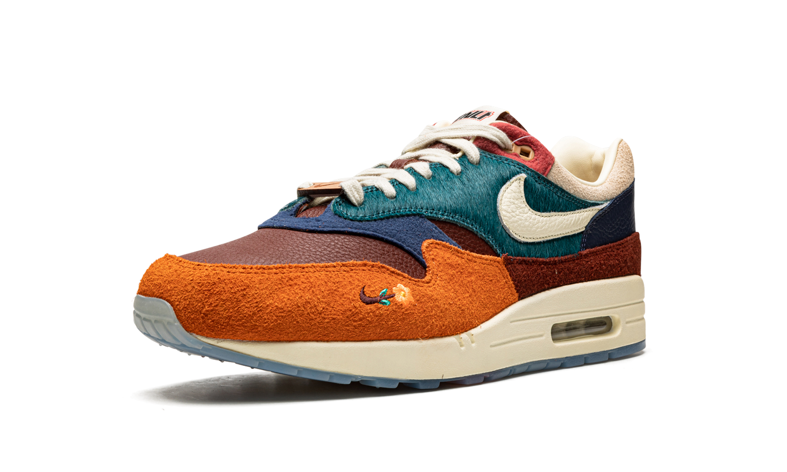 The Kasina x Nike Air Max 1 “Wong Ang – Orange” is a collaboration between the South Korean based brand and Nike on a collection of colorways of the retro running shoe inspired by Wong Ang—which means the unity of people in the Korean language. The two-shoe pack tells the story of the traditional Korean custom that involves Wong Ang Ducks, a set of carved wooden ducks given to newlywed couples. The shoe’s design is complete with a combination of materials in orange, burgundy, blue, and teal on the upper. Specifically, a teal faux pony hair textile can be found on the eyelet panel and mid-panel. The mudguard is constructed in a split orange and burgundy hairy suede on the toe and forefoot, and on the heel, respectively. The hues of green and blue on the shoe’s upper evoke the duck’s natural surroundings. Overall, the colors and materials used on the “Wong Ang” Air Max 1 by Kasina are a tribute to traditional Korean culture. Release date: June 8, 2022