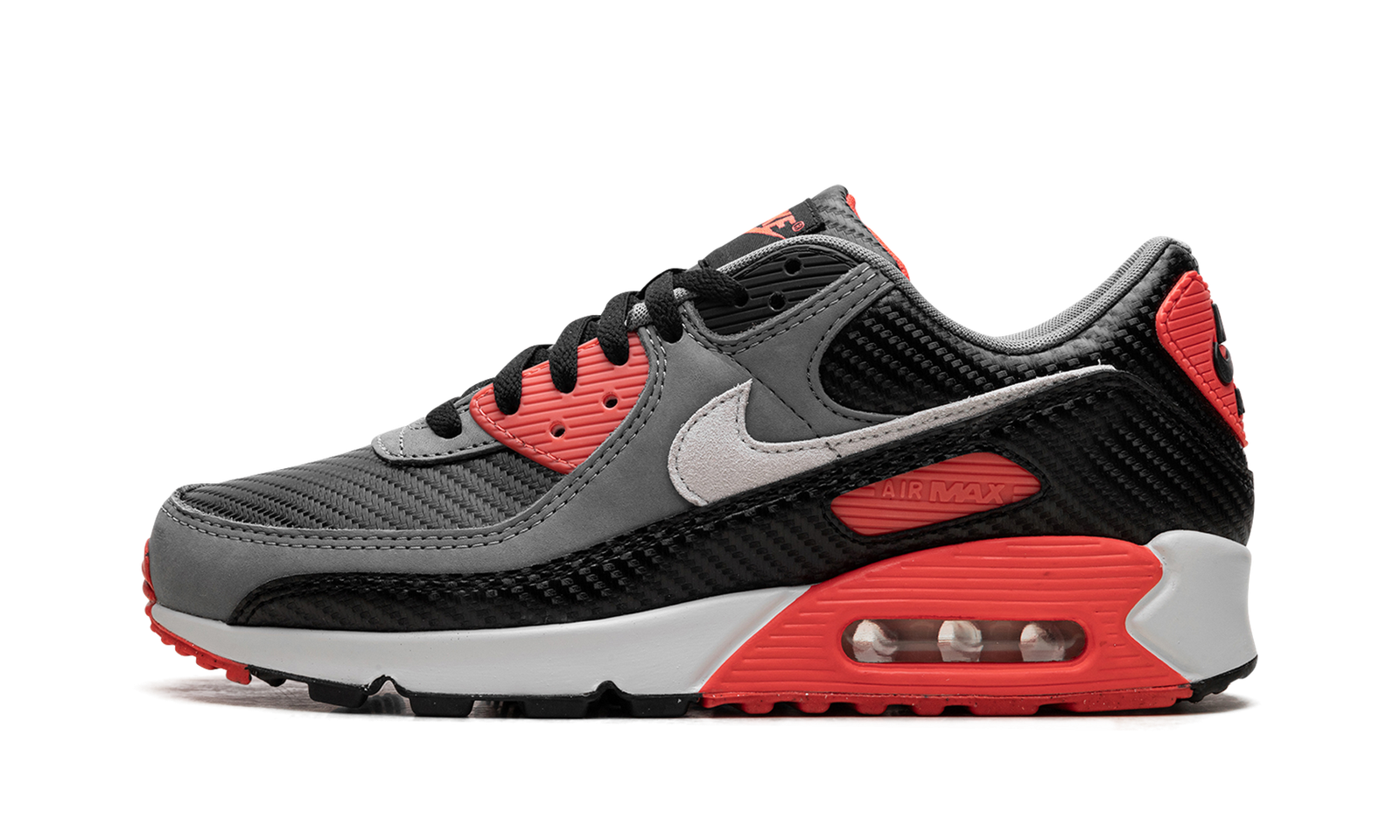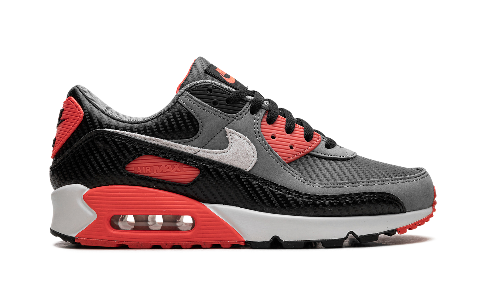 The style code HM9432-001 is for the Nike Air Max 90 Premium Men’s Shoes in the striking ‘Black/Cool Grey/Bright Crimson/Photon Dust’ colorway. This edition is widely known by the nickname ‘Carbon Fiber Infrared’ for its modern twist on the shoe’s most legendary color scheme.