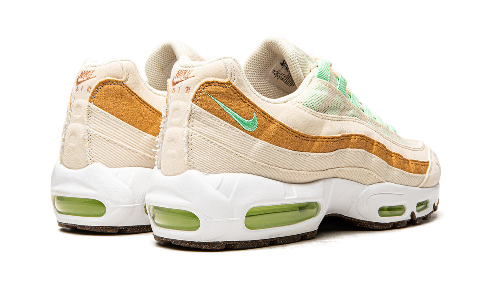 The Nike Air Max 95 “Happy Pineapple” is a fun-loving colorway imagined for the classic performance running shoe by Nike for its Spring 2021 campaign. With its nickname suggesting its design intentions, the “Happy Pineapple” indeed features a smiling pineapple character incorporated into its styling, specifically on the tongue. The shoe’s wavy panels are arranged in beige and orange hues while a teal Swoosh logo is embroidered on the collar. Brown “Nike Air” branding is stitched onto the back of the shoe. The lateral side of the shoe features teal nylon eyelets while the medial side of the shoe is complete with beige eyelets. The white foam midsole displays neon green tinted Air bubbles. Release date: June 17, 2021