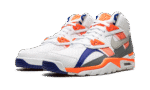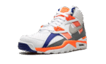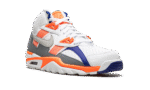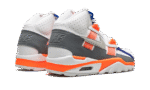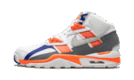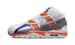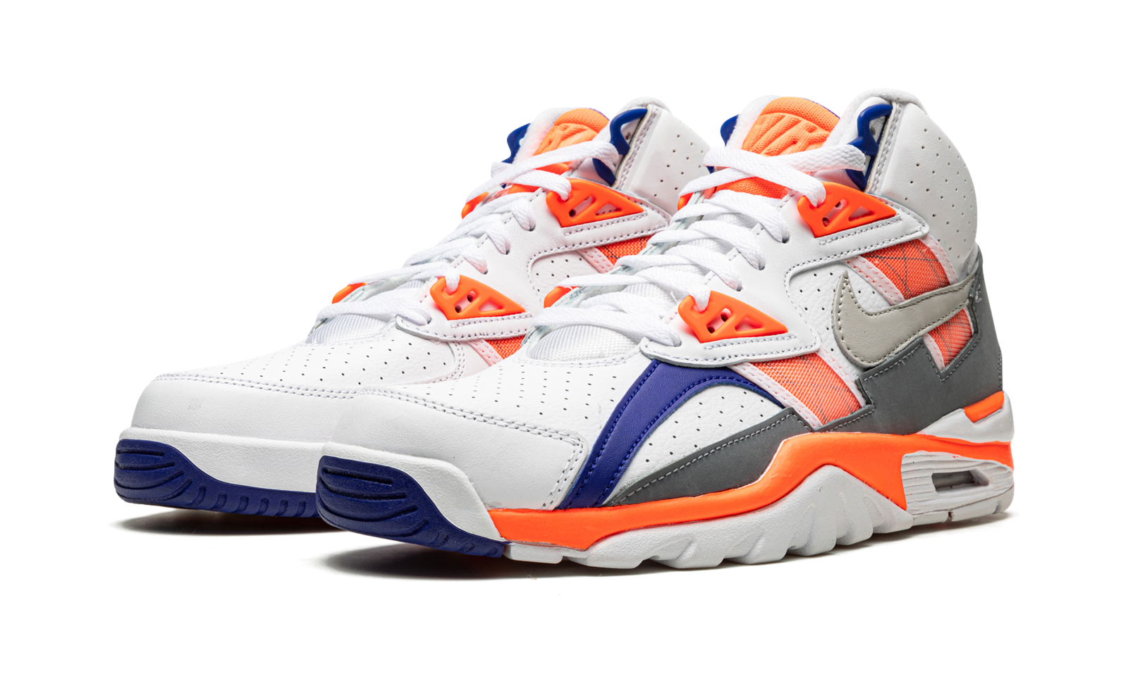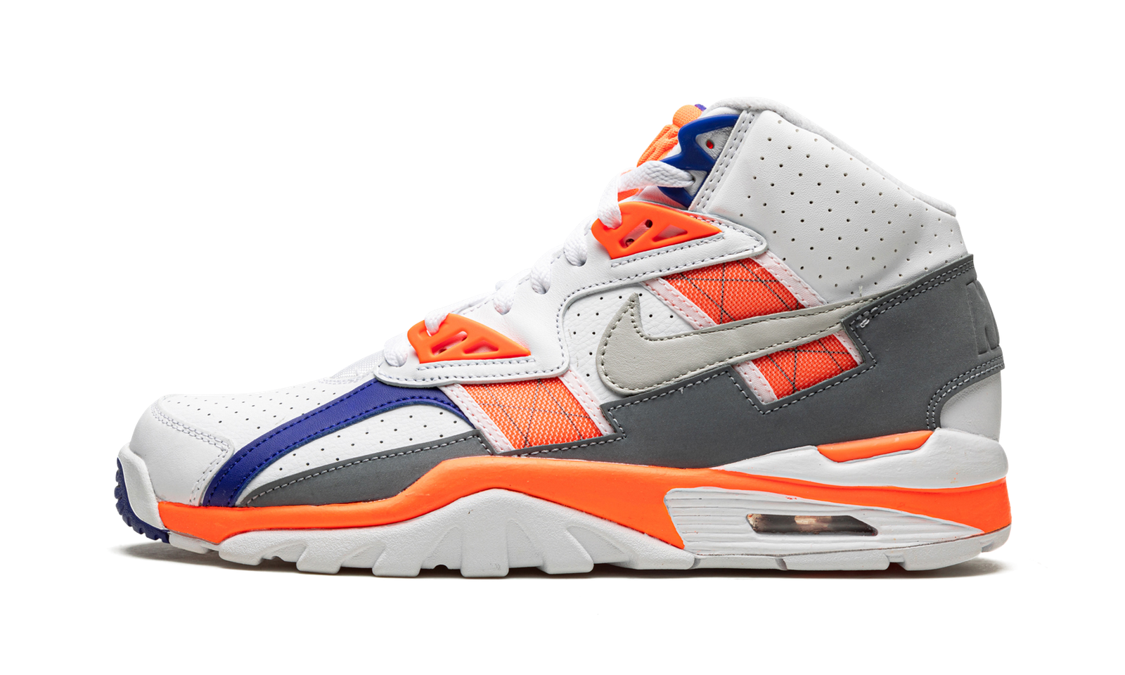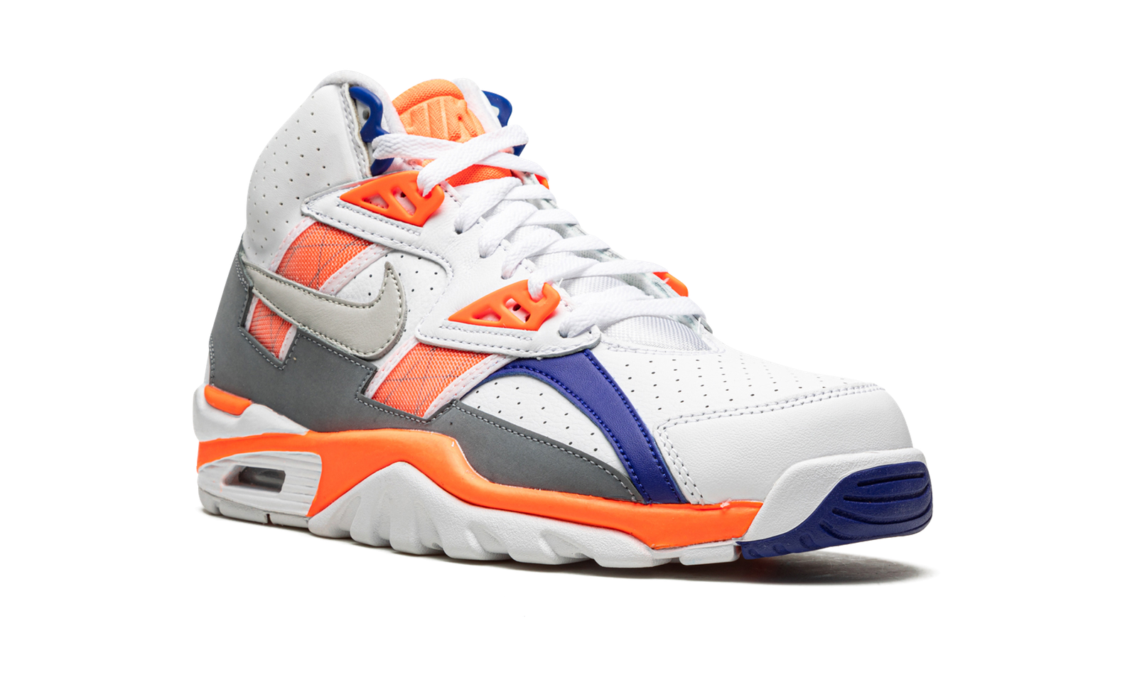 The Nike Air Trainer SC High “Auburn” is a classic colorway of Bo Jackson’s former signature training shoe. Dressed in a blue, orange, and white color scheme, the “Auburn” Air Trainer SC High honors Bo’s alma mater, Auburn University, where he starred on the school’s football team from 1982 to 1985. Bo famously wore the performance shoe in memorable Nike advertisements in the early 1990s. The modern “Auburn” stays true to the original’s design, as it features a perforated white leather upper with a blue leather overlay on the forefoot. Orange nylon straps with contrast criss-cross blue stitching anchor the eyelet panel. A grey synthetic material appears on the mudguard. A light grey felt Swoosh is found on both sides of the shoe, and debossed “NIKE” detailing appears on the heel counter. An orange overlay appears above the visible Air unit in the heel of the midsole.