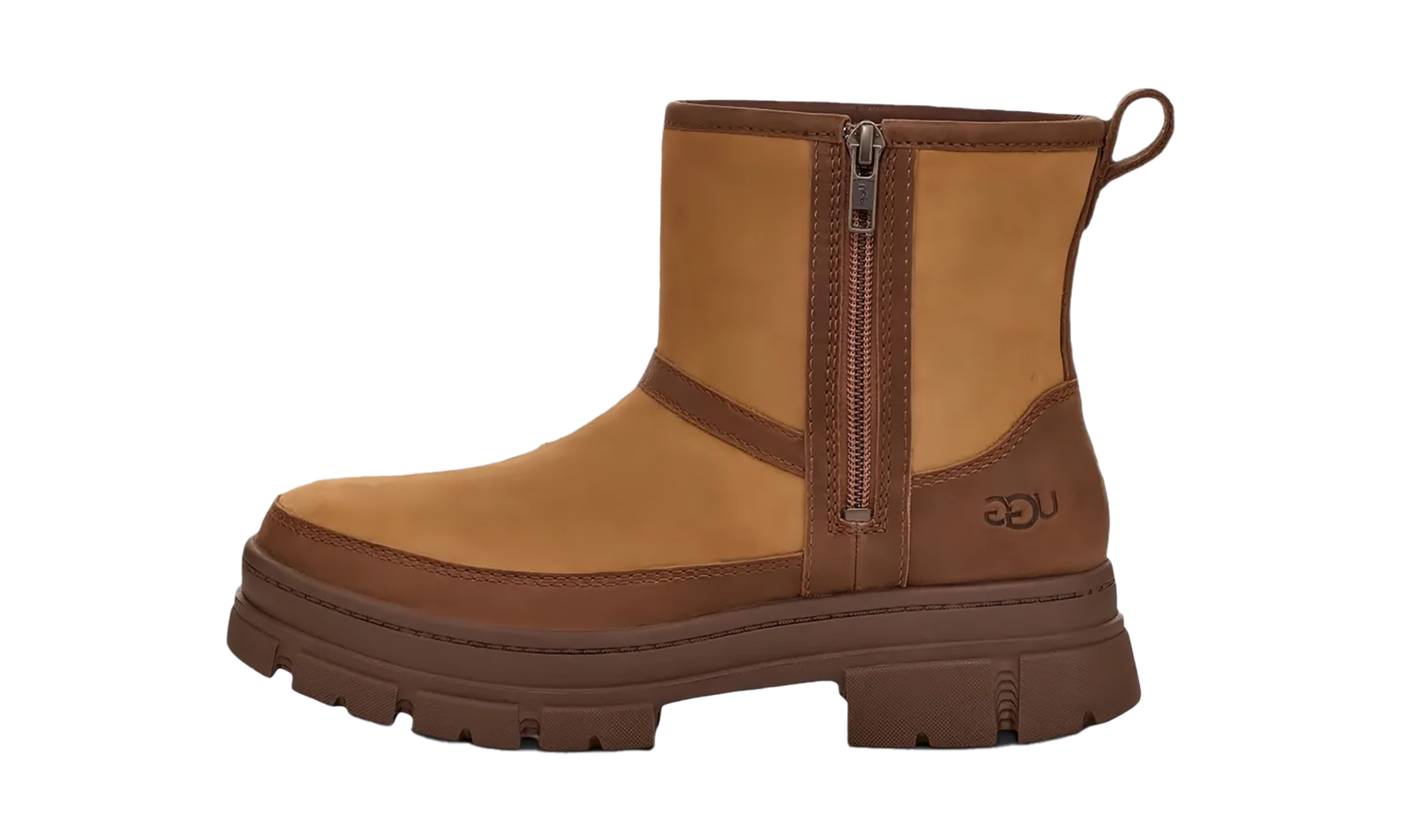 Hello, sleek style and supreme comfort! The UGG Ashton Zip Boot Wmns in classic “Chestnut” is the modern cold-weather boot that changes everything. Crafted with durable, waterproof leather and chunky rubber lugs, it fuses rugged utility with a fresh aesthetic. You get signature UGG coziness from the toasty UGGplush™ wool-blend shaft lining, while the lateral zipper makes slipping them on and off incredibly easy. This boot is built for comfort and style, rain or shine.