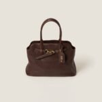 The Aventure top-handle bag, recovered from the Miu Miu archives, has been reinterpreted in terms of a lighter structure and attitude, creating a classic style with timeless charm. The embossed lettering logo completes the design with an iconic note.