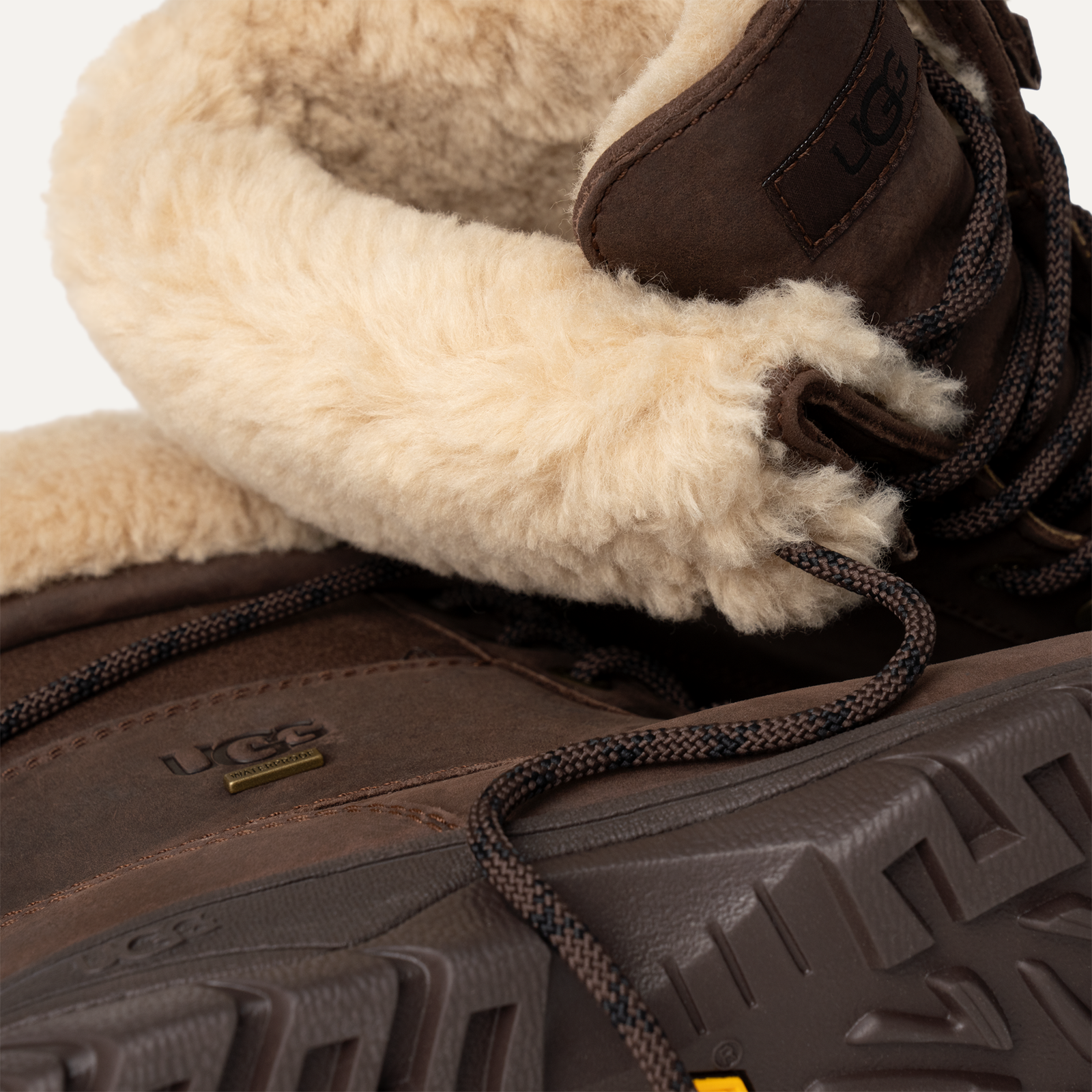 - 8mm fluffy poly knit fabric lining on vamp, 8mm fluffy poly knit fabric lining on quarter, 17mm UGGpureâ„¢ upcycled wool lining