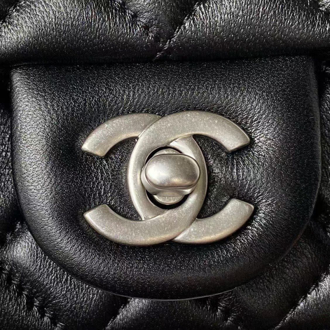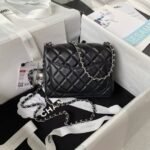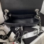 Chanel 23C AS1786 Mini Square Pearl Embossed Flap Bag Antique Silver Hardware Black