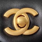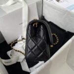 Chanel 23K AS1787 Mini Pearl Embossed Rectangular Flap Bag Lambskin Brushed Metal Hardware Black