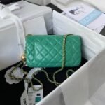 Chanel 23K AS1787 Mini Pearl Embossed Rectangular Flap Bag Lambskin Brushed Metal Hardware Green