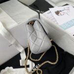 Chanel 23K AS1787 Mini Pearl Embossed Rectangular Flap Bag Lambskin Brushed Metal Hardware White