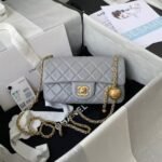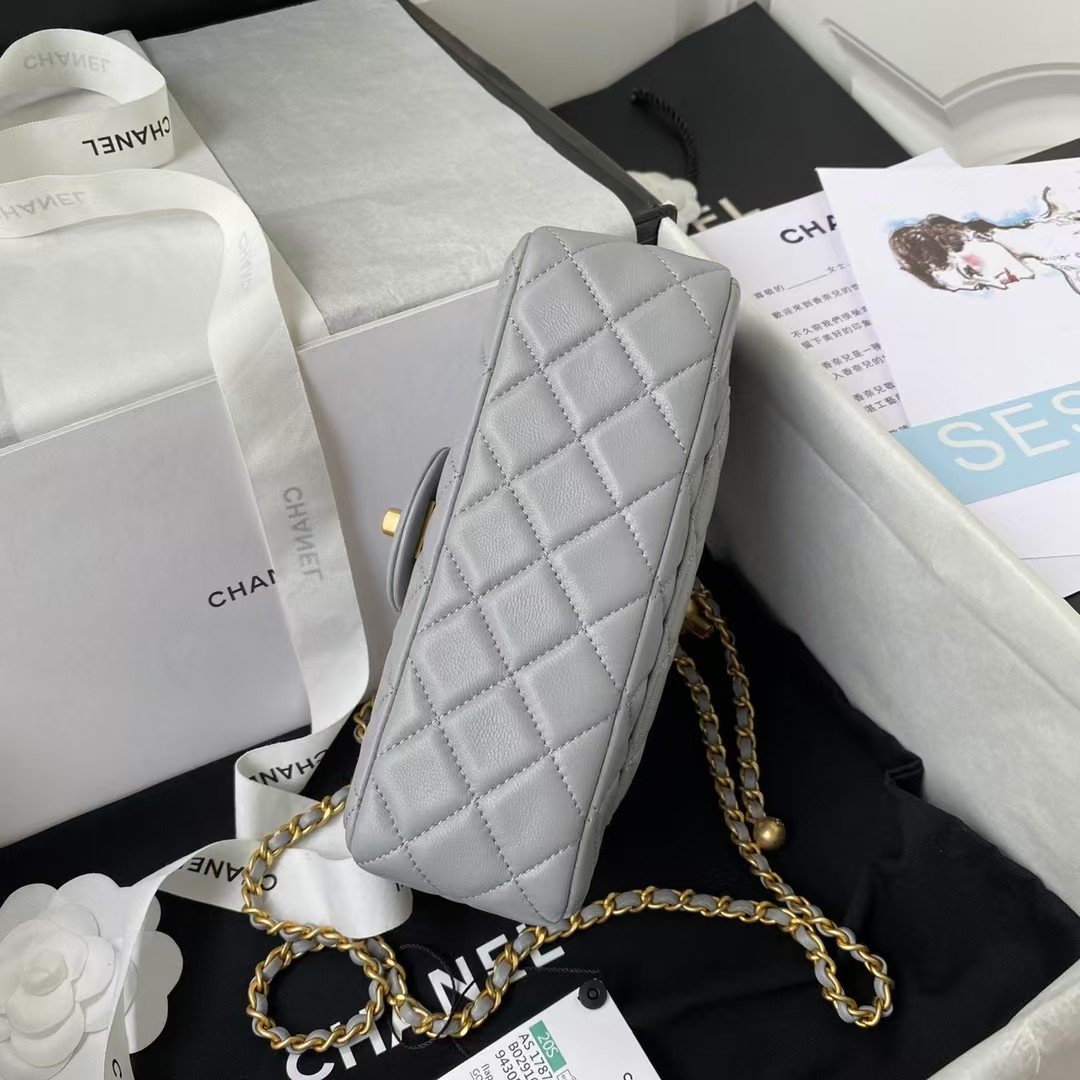 Chanel 23K AS1787 Mini Pearl Embossed Rectangular Flap Bag Lambskin Brushed Metal Hardware Light Grey
