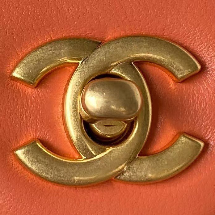 Chanel 23K AS1787 Mini Pearl Embossed Rectangular Flap Bag Lambskin Brushed Metal Hardware Orange