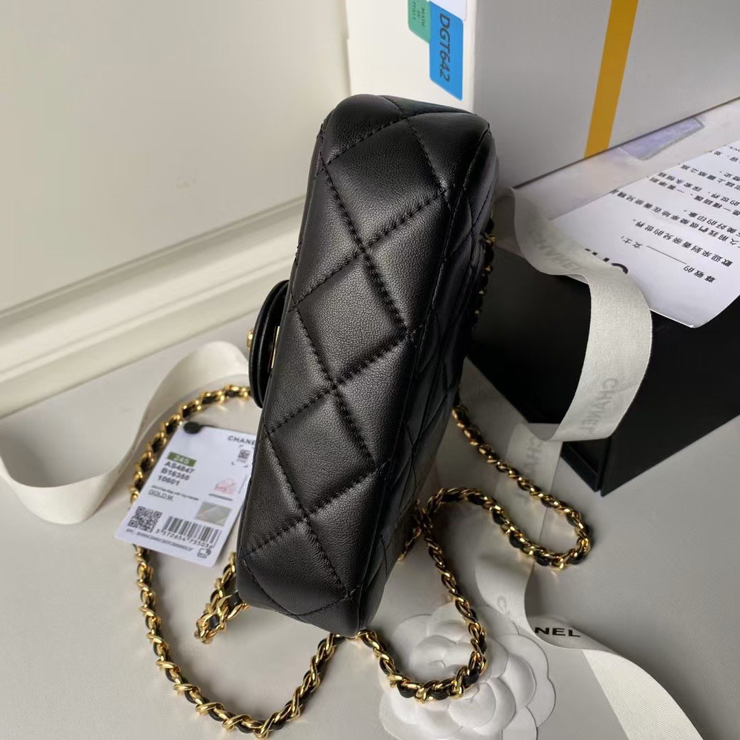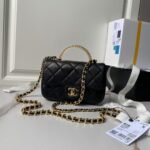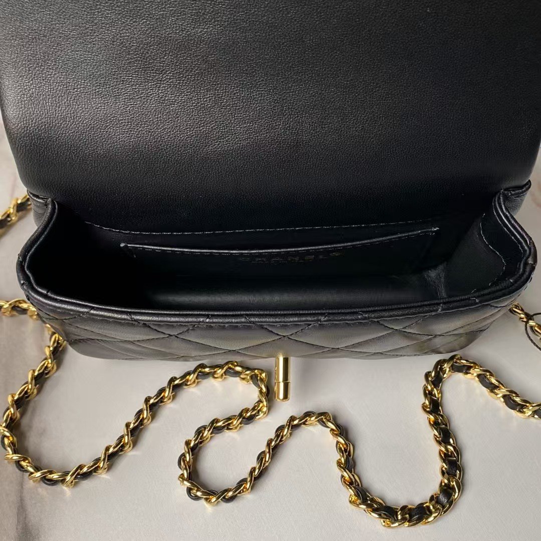Chanel AS4847 Mini Flap Bag With Top Handle Lambskin Resin Black
