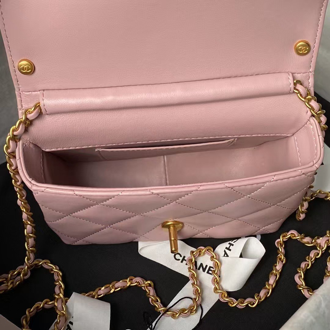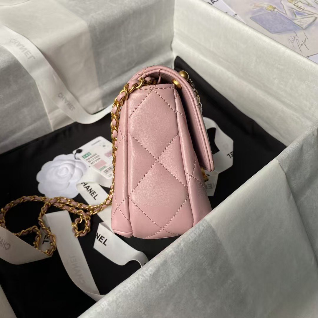 Chanel AS4986 Mini Flap bag Shiny Lambskin Imitation Pearls & Gold-Tone Metal Pink