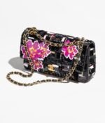 Embroidered Satin, Sequins & Gold-Tone Metal Classic Flap Bag