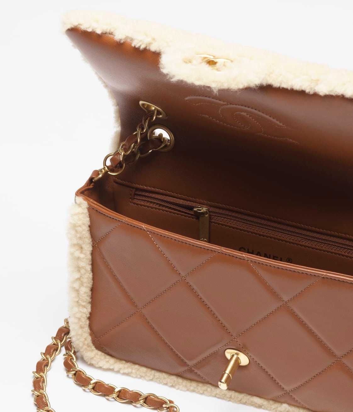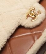 This Chanel Flap Bag in shearling lambskin offers a unique twist on the classic design, perfect for adding texture and warmth to your fall/winter wardrobe. The plush exterior provides a cozy feel while maintaining the timeless elegance associated with Chanel handbags.