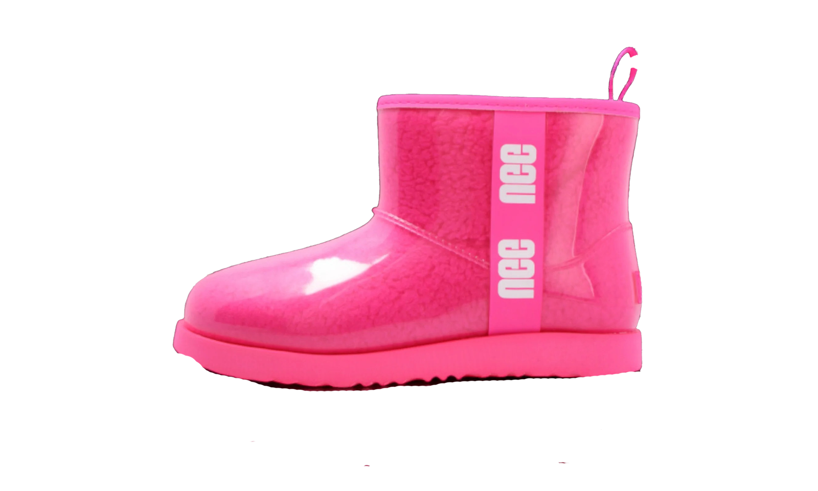 Introducing the adorable UGG Classic Clear Mini PS ‘Tyndall Pink,’ affectionately known as the “Tyndall Pink” boot! These mini marvels keep little feet cozy and dry, combining the iconic soft UGG wool lining with a flexible, waterproof clear outer shell. Designed for grade school adventurers, the vibrant pink color adds a playful pop to any outfit, whether it’s a rainy day at the park or a snowy walk to school. Give your child the gift of unmatched comfort and fearless, practical style.