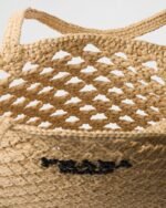 This tote bag with a summery mood reinterprets classic styles in crochet with a modern, sophisticated design. The light, roomy accessory is enhanced by a refined geometric motif inspired by the iconic Prada triangle, while the embroidered lettering logo in a contrasting color completes it with a distinctive touch.