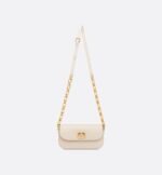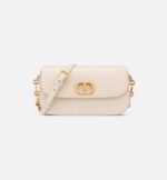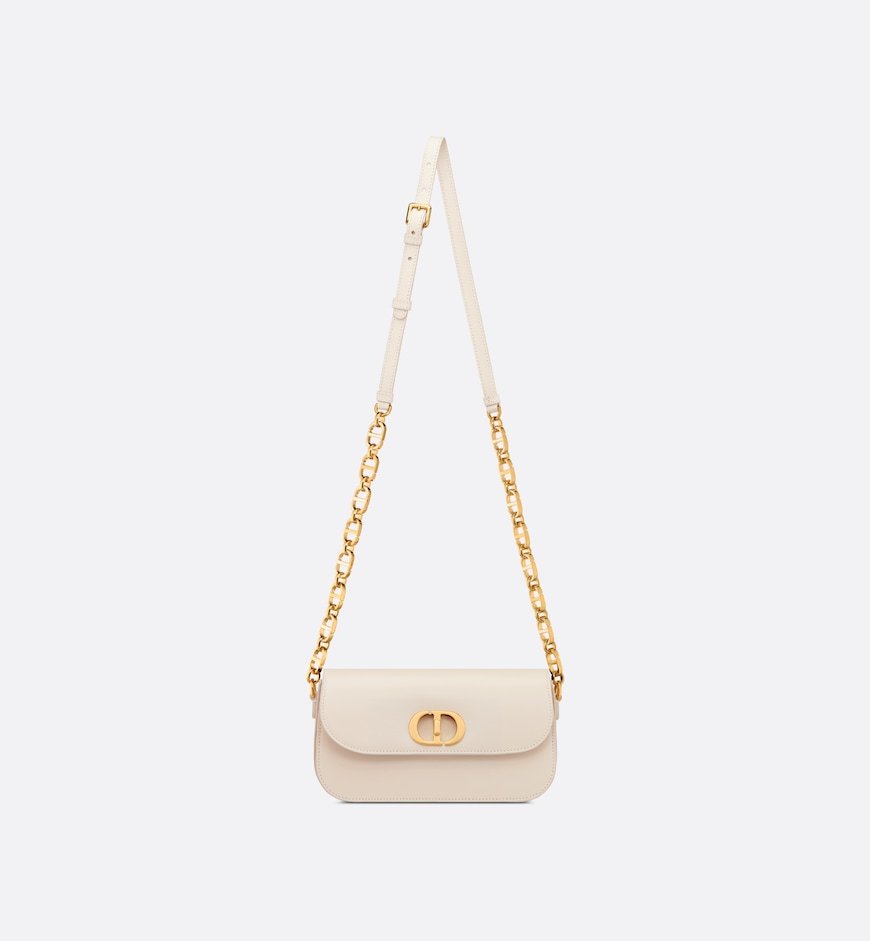 The 30 Montaigne Avenue bag enhances the hallmark line with a timeless and elegant style. Crafted in dusty ivory box calfskin, the rounded flap with delicate curves is punctuated by an antique gold-finish metal CD clasp inspired by the seal of a Christian Dior perfume bottle. The design is completed by other details, like the 30 Montaigne signature embossed on the back and the signature chain alternating gold-finish metal and tonal enamel links that match the leather. The gusseted bag features a spacious and refined silhouette that can be carried by hand, worn over the shoulder or crossbody.