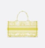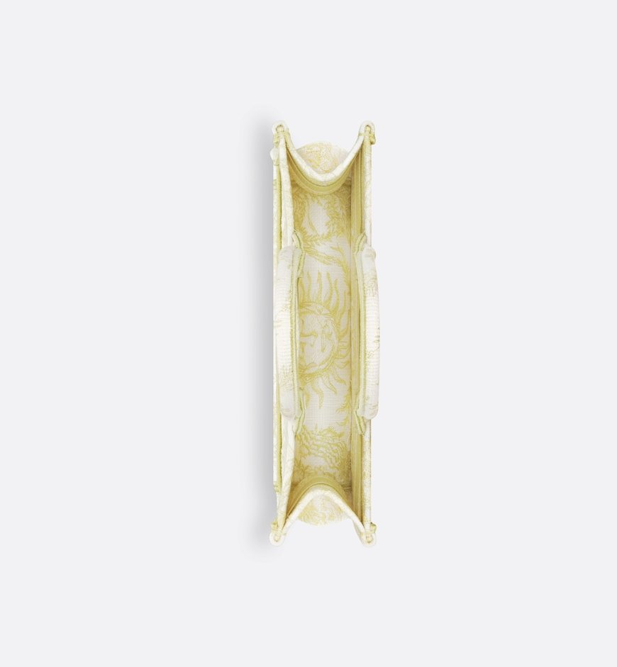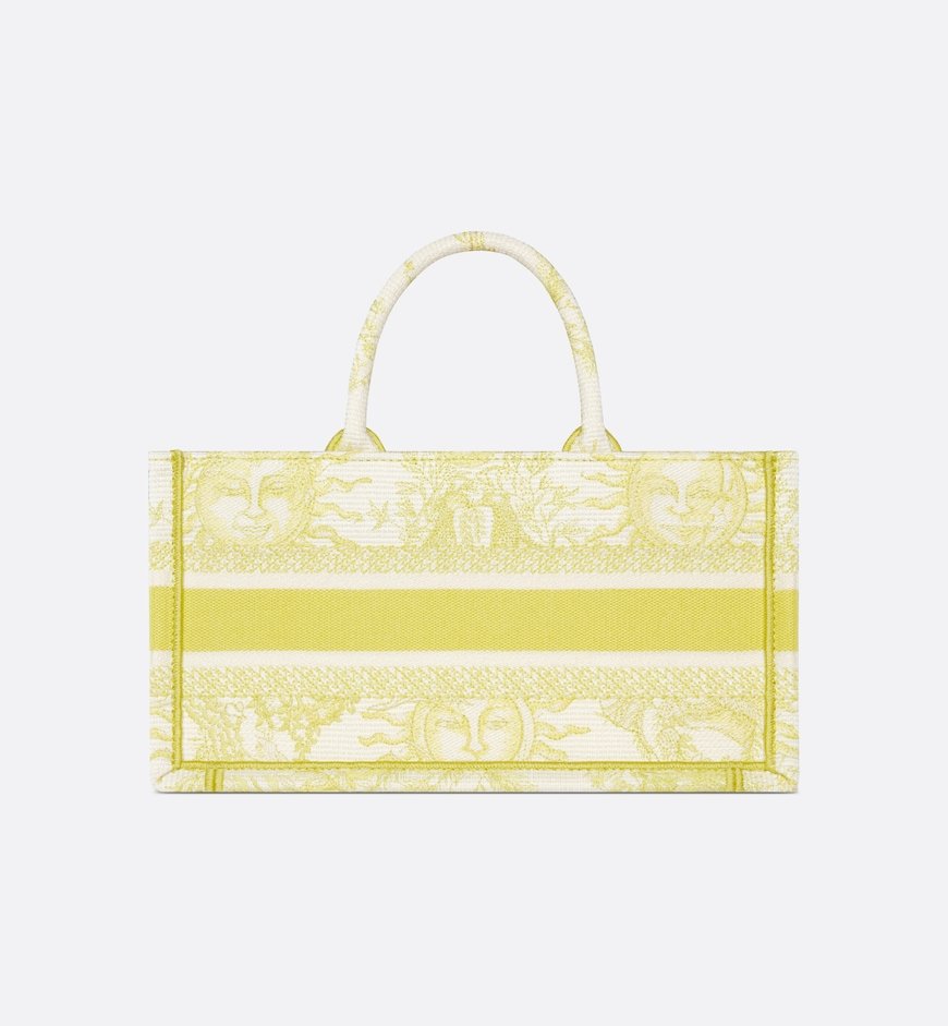 Part of the Dioriviera capsule, Maria Grazia Chiuri’s newest Dior Book Tote is updated with a new East-West format. The style is entirely embroidered with the Toile de Jouy Soleil motif in lemon yellow, offering a new take on the iconic House pattern with suns and crescent moons layered into a floral arrangement representing the four seasons. Designed to keep daily items organized, the practical tote is a prime example of Dior’s savoir-faire and can be carried by hand or worn over the shoulder.