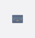 The Dior Jolie Freesia card holder is an elegant accessory from the House’s new line. Constructed in denim blue lambskin with Cannage stitching, it is accented by the CD signature embellished with a resin pearl. Featuring five card slots, the refined accessory will fit anywhere and can be paired with other Dior Jolie creations.