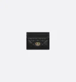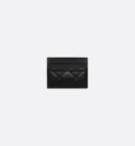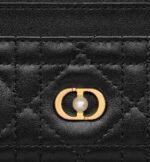 The Dior Jolie Freesia card holder is an elegant accessory from the House’s new line. Constructed in black lambskin with Cannage stitching, it is accented by the CD signature embellished with a resin pearl. Featuring five card slots, the refined accessory will fit anywhere and can be paired with other Dior Jolie creations.