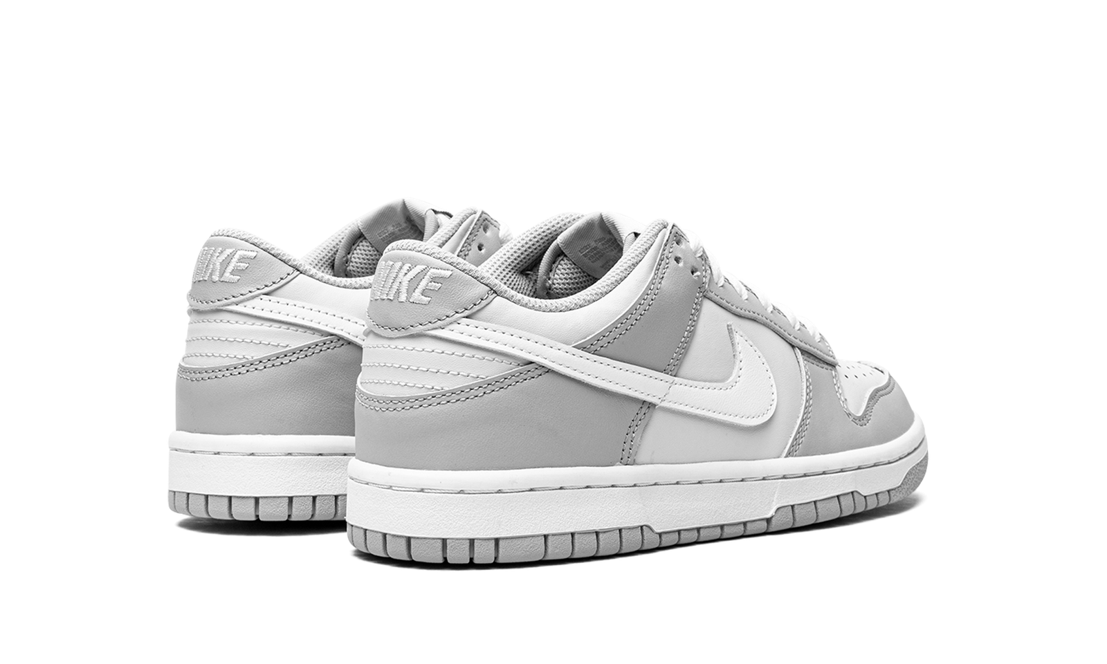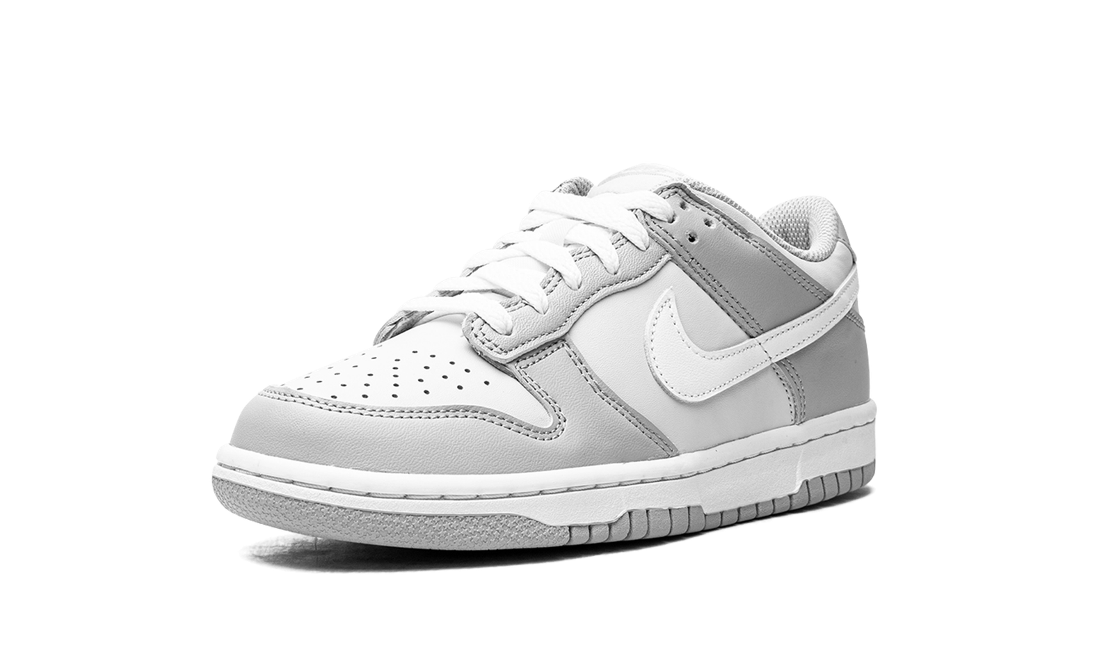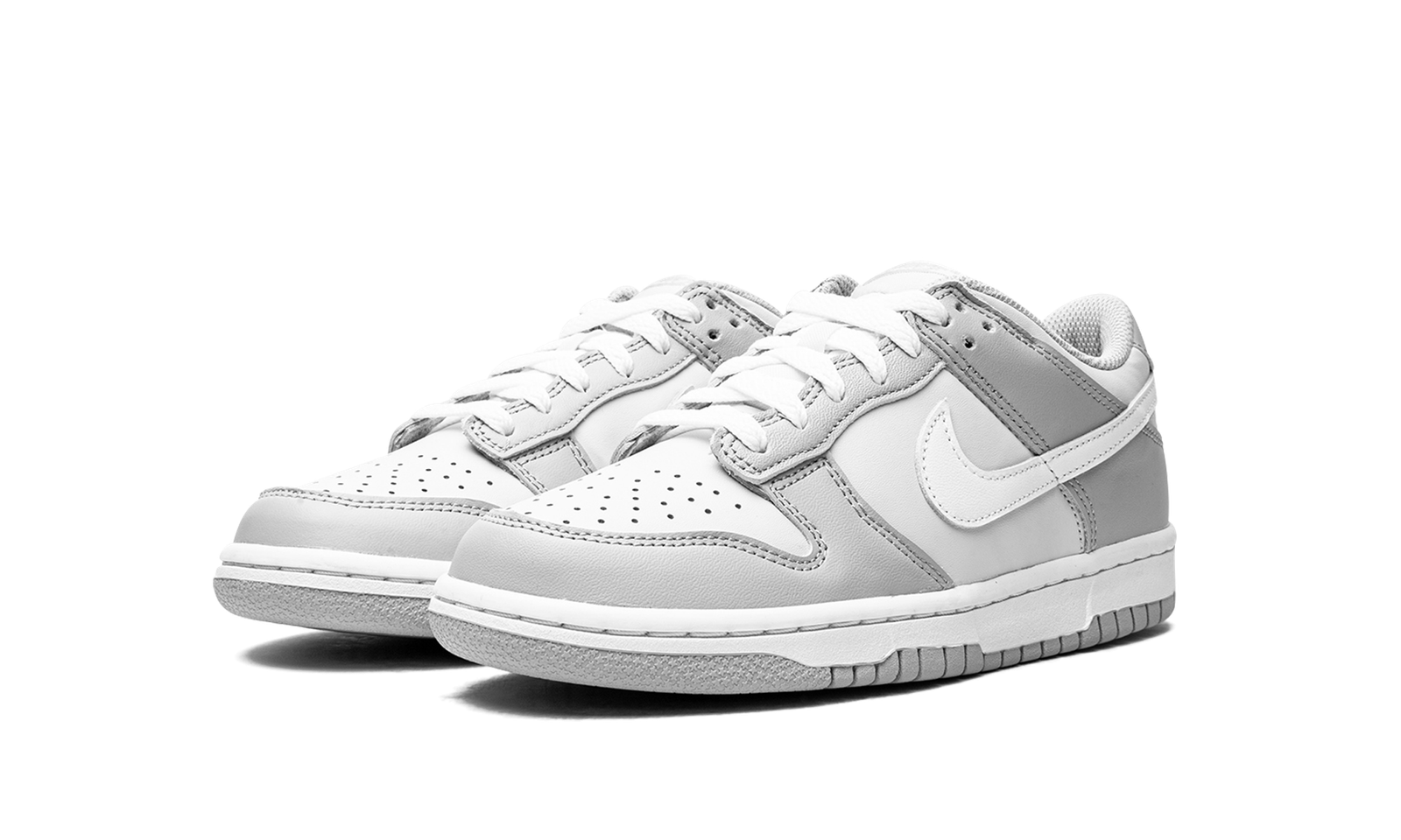 The Nike Dunk Low GS “Two-Tone Grey” is the youth sizing of the versatile grey colorway of the classic sneaker. The upper features light grey or Pure Platinum-colored leather on the perforated toe, mid-panel, and collar. The overlays are designed in Wolf Grey leather. A white leather Swoosh is found on the sides and “Nike” branding is embroidered on the heel. The tongue tag features “Nike” and Swoosh detailing to complete the look. Release date: February 28, 2022
