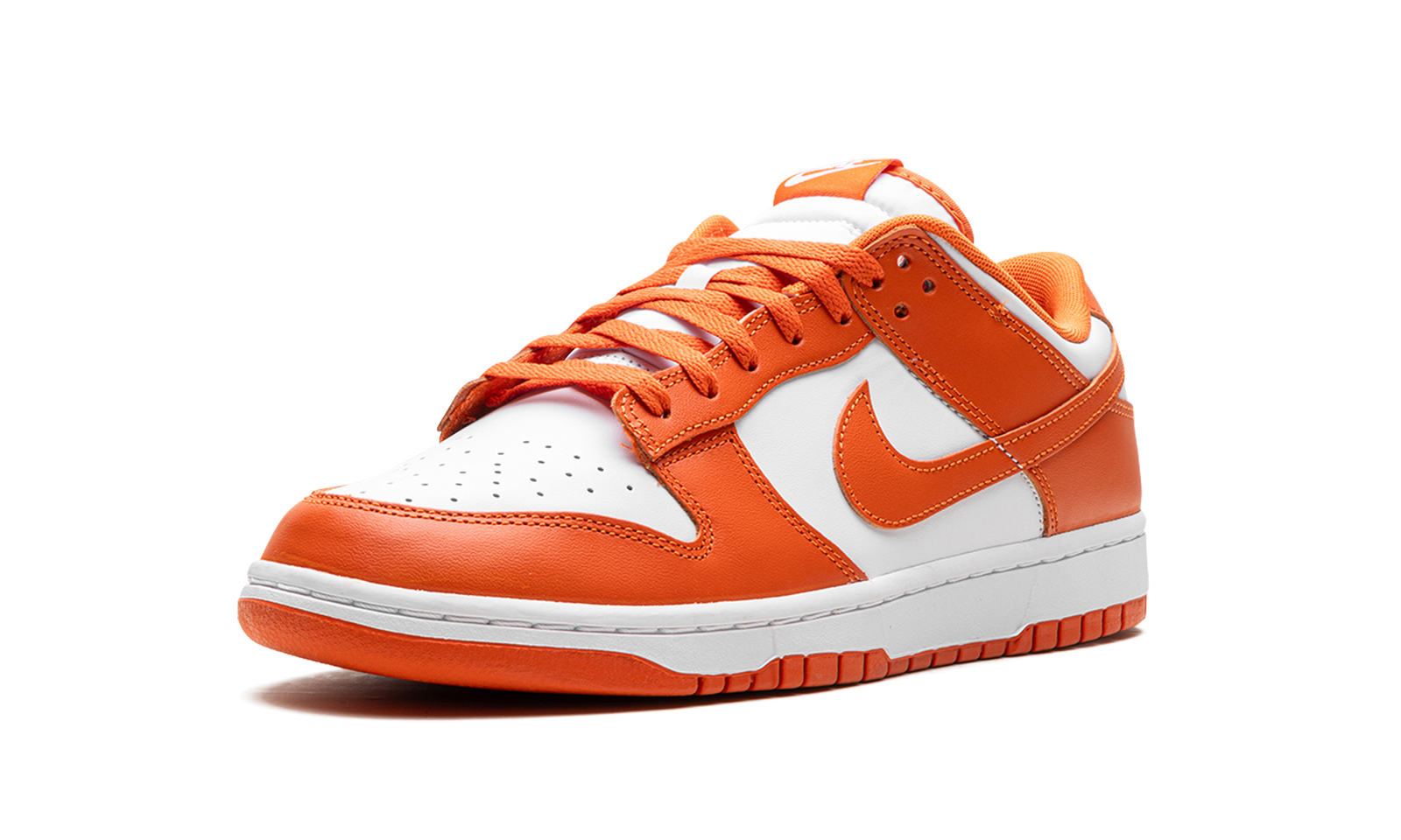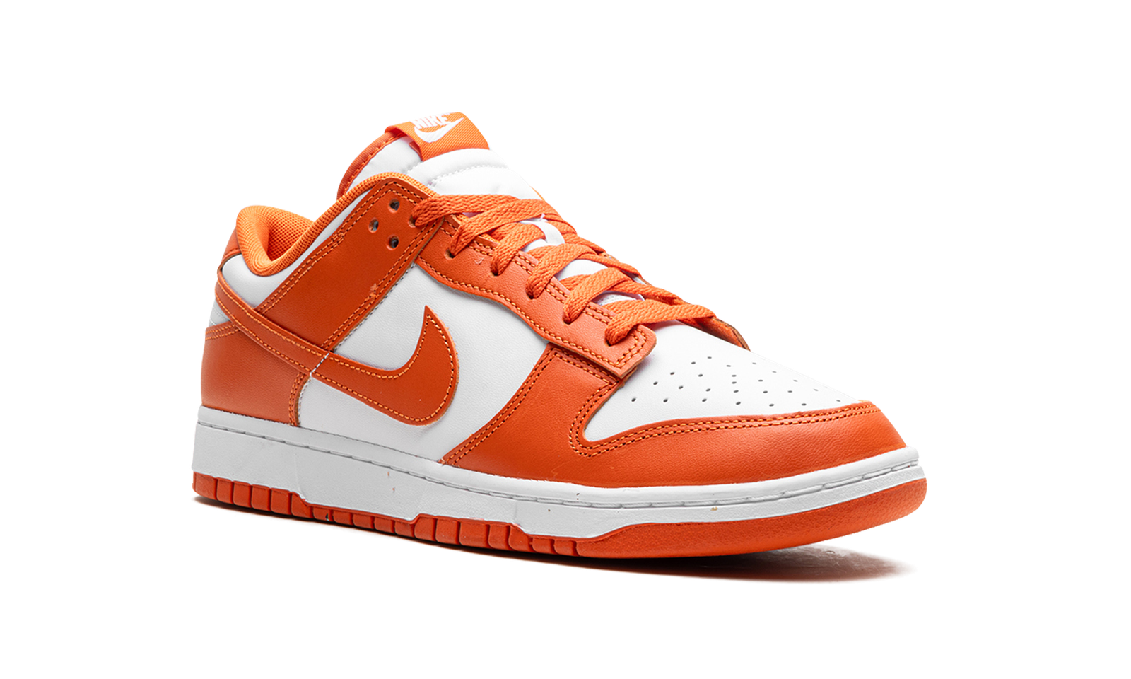This Nike Dunk Low stays true to the iconic color blocking that the silhouette is known for when one main color is featured. This shoe has a clean white leather upper with perforations on the toe box for enhanced breathability. Cosmic clay then takes over and flows from the toe cap and forefoot, to the eyelet, and then wraps down around the heel.