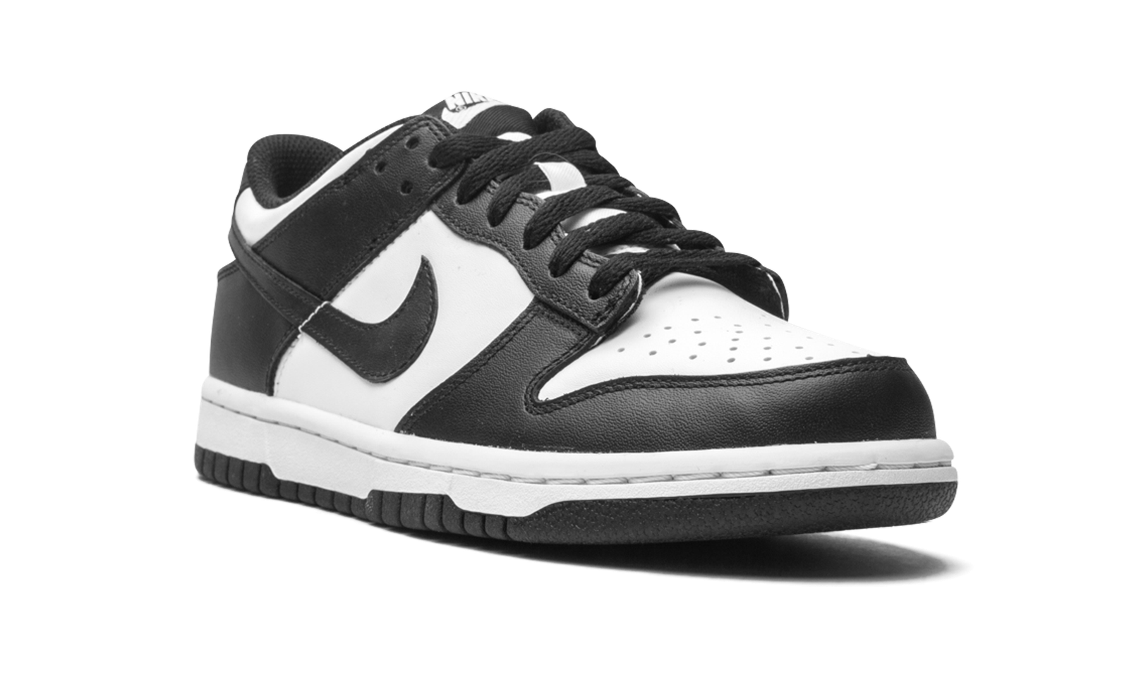 The Nike Dunk Low GS “Panda” is the youth sizing of the popular, two-tone, white-and-black colorway of the classic basketball shoe. The “Panda” Dunk is one of the most desirable sneakers in the marketplace due to its versatility and timeless design. The shoe features a white leather base contrasted black leather overlays and black leather Swoosh branding on the sides. White “Nike” branding is embroidered on the heel and printed on the tongue tag. A white midsole and black rubber outsole complete the look. Release date: March 10, 2021