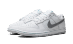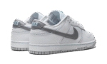 The Winter Storm Nike Dunk Low SE comes with a cracked leather upper in icy blue hues, with tumbled white leather overlays on the eyestay, heel, and forefoot.