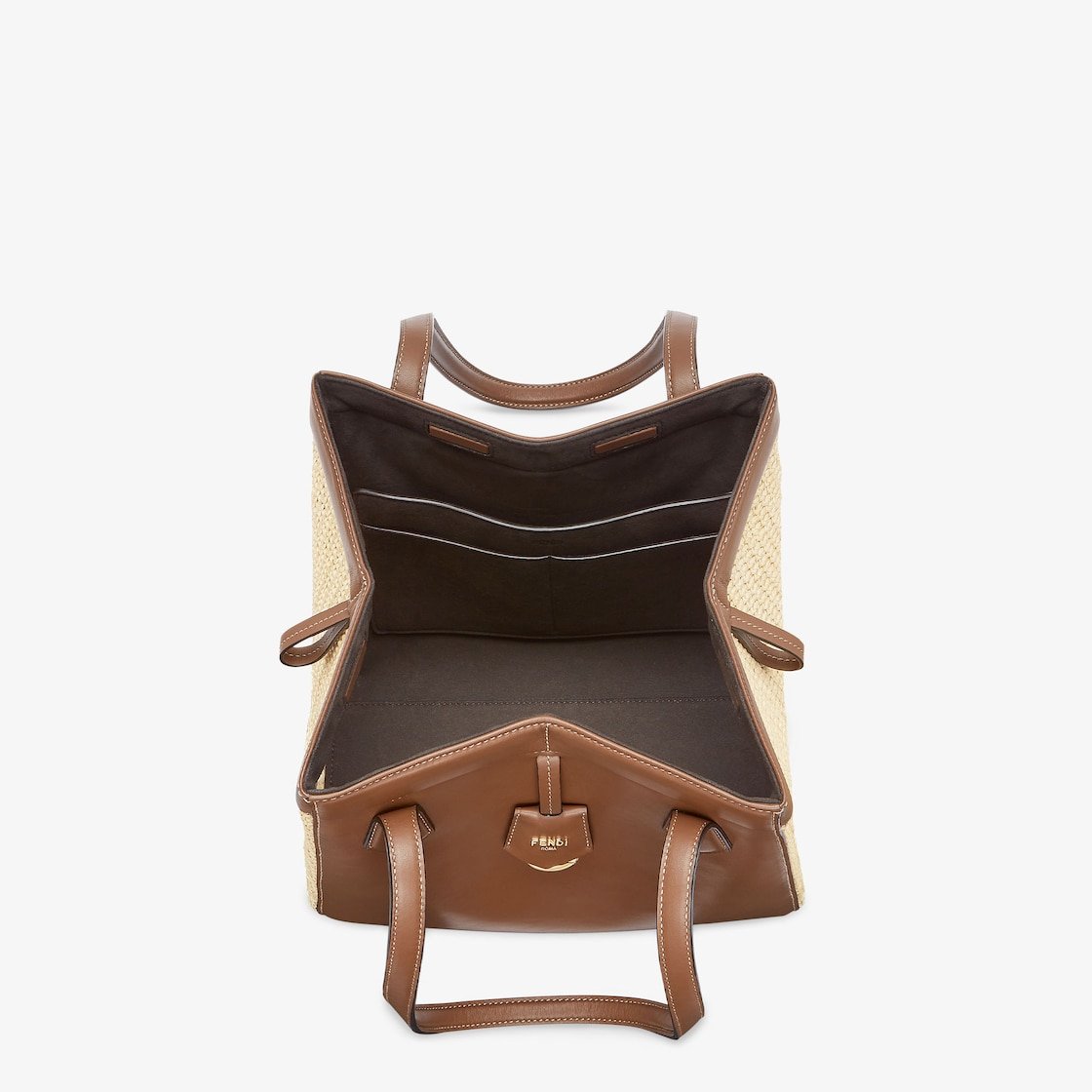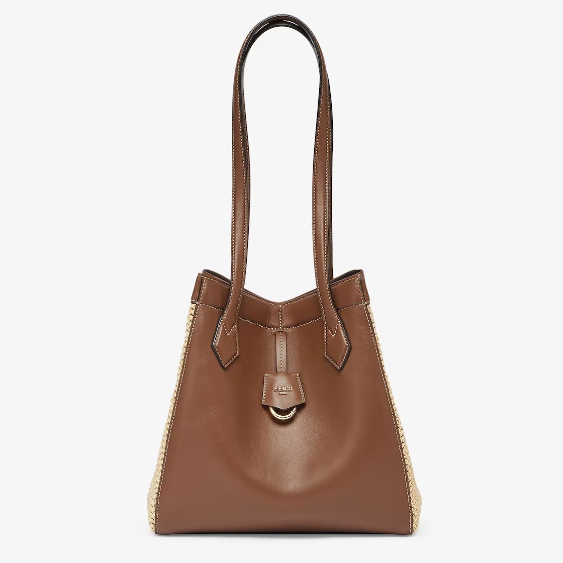 Medium Origami Bag. The style recalls the duality and creativity of Fendi with an innovative and transformable design:the ingenious closure with eight magnets means the bag can be folded, origami-style, transforming it from a bucket bag, when the magnets come together in the middle with a magic clasp, into a shopper by gently pulling the leather ties on the short shoulder straps on each side.