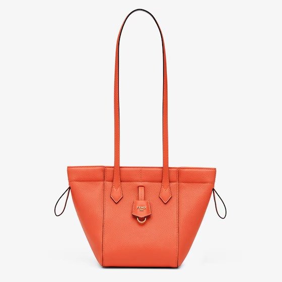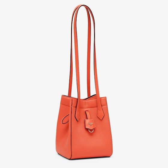 Mini Origami bag made of red full-grain leather. The style recalls the dual nature and creativity of Fendi with an innovative design that can be transformed:the ingenious closure with eight magnets means the bag can be folded, origami-style, transforming it from a bucket bag – when the magnets come together in the middle with a magic clasp – into a shopper by gently pulling the short shoulder straps on each side.