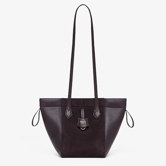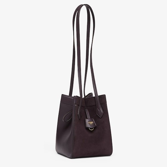 Mini Origami Bag. The style recalls the duality and creativity of Fendi with an innovative and transformable design:the ingenious closure with eight magnets means the bag can be folded, origami-style, transforming it from a bucket bag, when the magnets come together in the middle with a magic clasp, into a shopper by gently pulling the leather ties on the short shoulder straps on each side.
