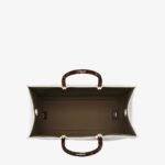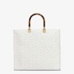 Medium Sunshine Shopper bag made of white leather with raised 3D-texture FF motif and rigid tortoiseshell-effect plexiglass handles.