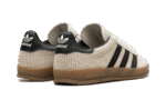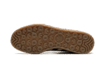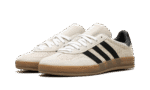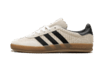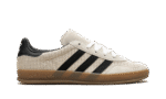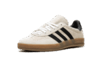 The adidas Gazelle Indoor “Aluminum Core Black” modernizes a classic with earthy tones and updated materials. Beige cotton mesh forms the upper, accented by suede overlays. Black nylon stripes and leather details provide sharp contrast. Classic Trefoil branding remains, honoring the shoe’s retro roots. An Ortholite sockliner ensures comfort, while a gum outsole delivers reliable traction. This iteration blends vintage style with contemporary updates, offering a sleek, versatile look. It balances comfort and style, making it suitable for both casual wear and indoor activities.