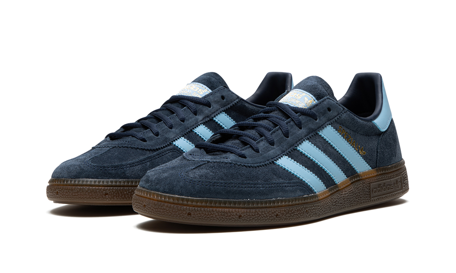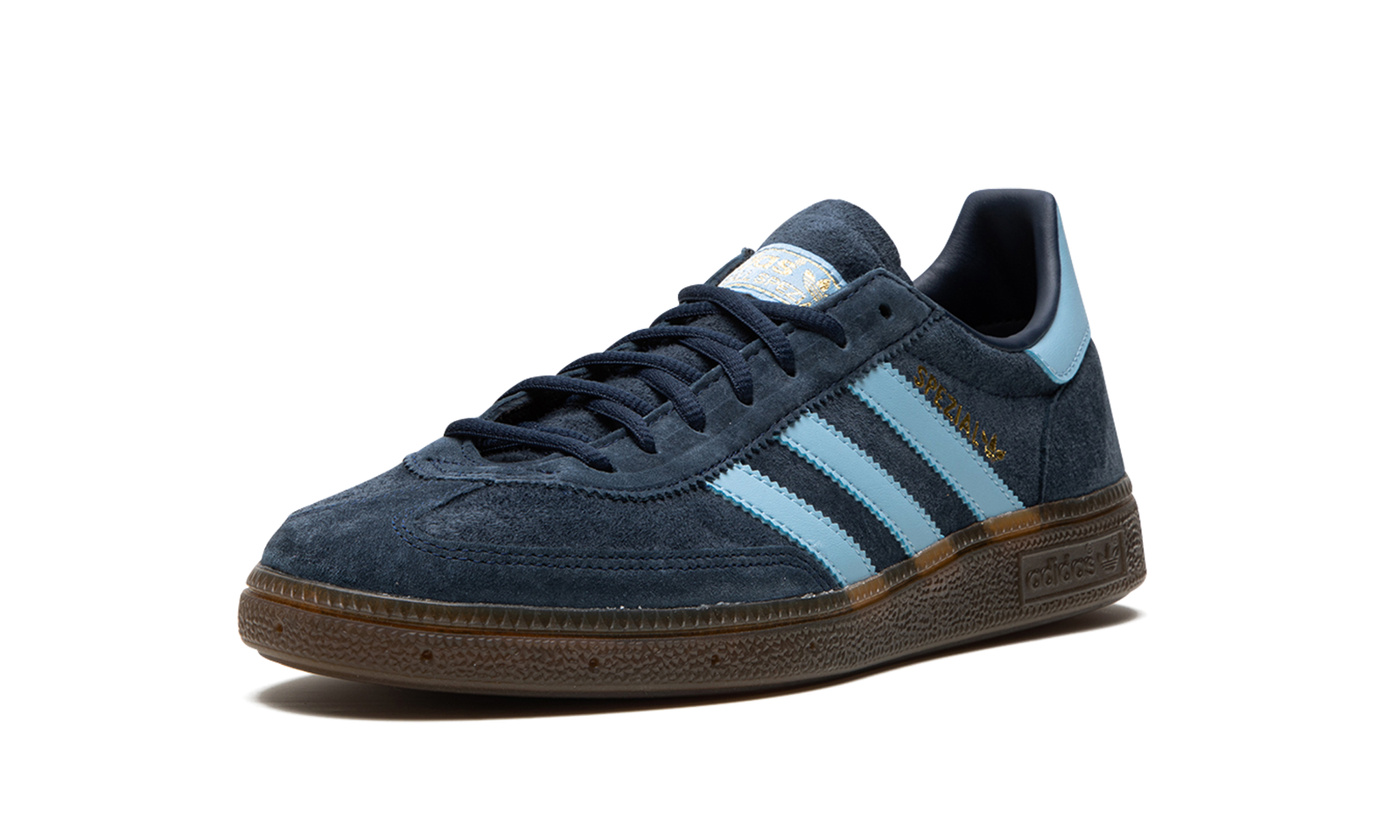 The adidas Handball Spezial “Navy/Gum” is a navy blue colorway of the shoe inspired by 1980s-era soccer sneakers. The Handball Spezial in “Navy/Gum” features a navy blue suede design with light blue leather Three Stripes branding on the sides. Gold “Spezial” and adidas logos appear next to the Three Stripes on the lateral side of the profile. Additional classic adidas detailing can be found on the tongue. A gum rubber sole completes the look. Release date: August 26, 2020