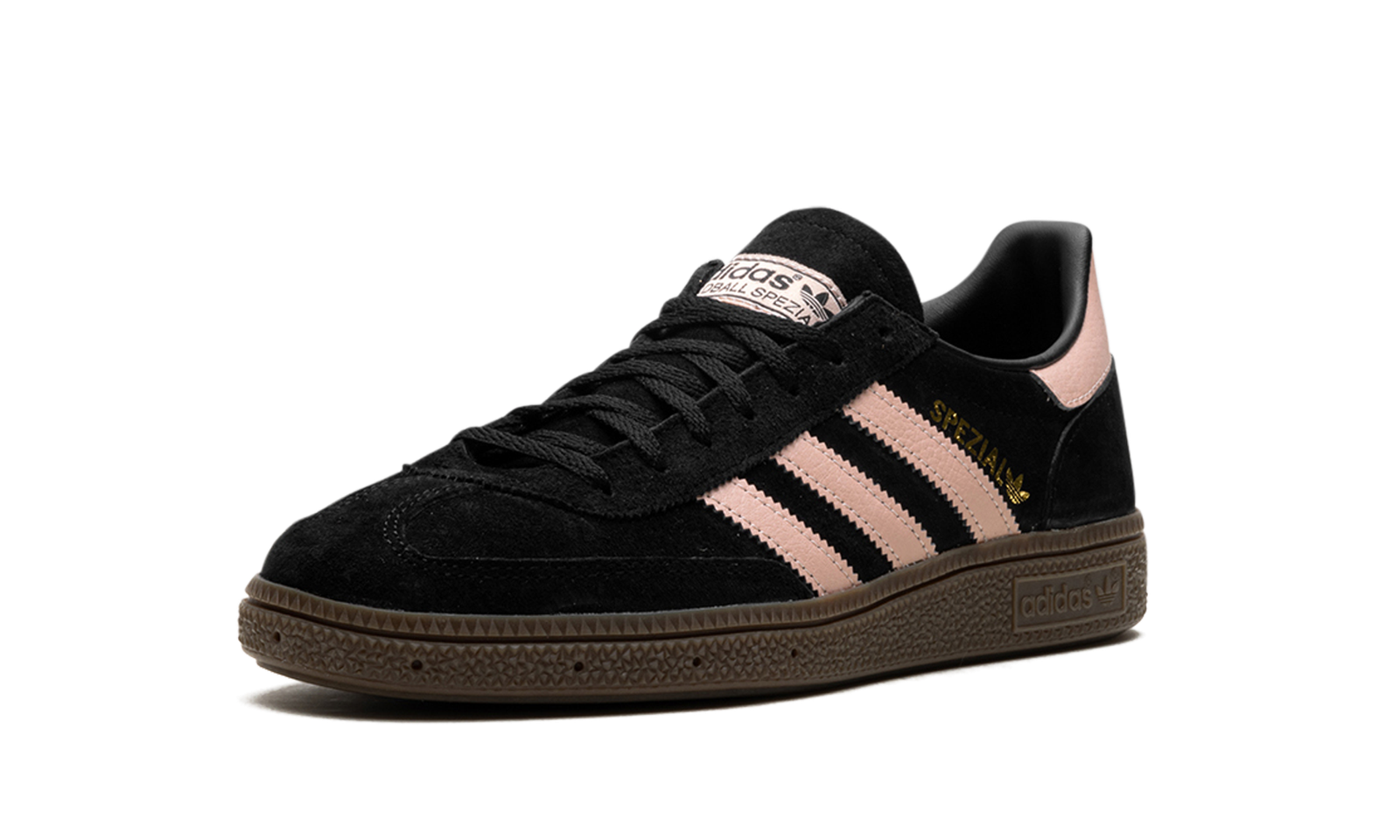 Step out in retro perfection with the adidas Handball Spezial WMNS “Black Icy Pink” sneaker! This iconic silhouette, originally designed for handball players in 1979, has been reimagined for modern street style. It features a sleek black suede upper with eye-catching icy pink accents on the serrated three-stripes and heel tab, plus a touch of gold metallic branding. Resting on the classic low-profile gum rubber outsole, these kicks deliver vintage charm, comfortable all-day wear, and excellent traction.