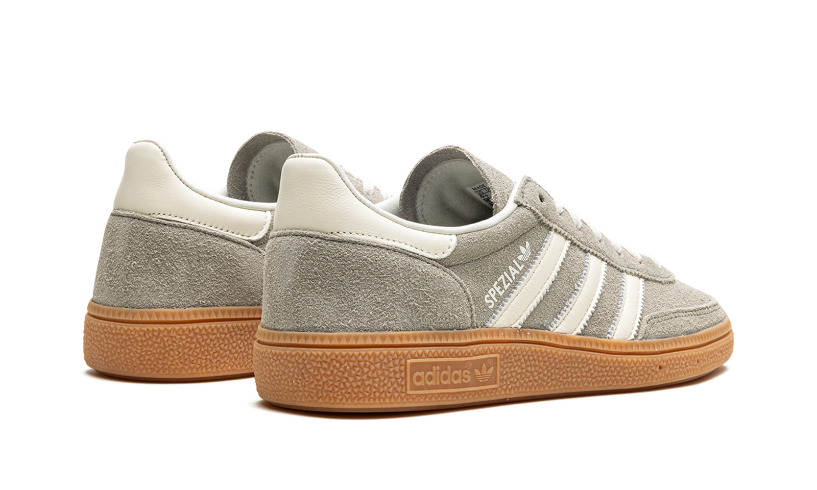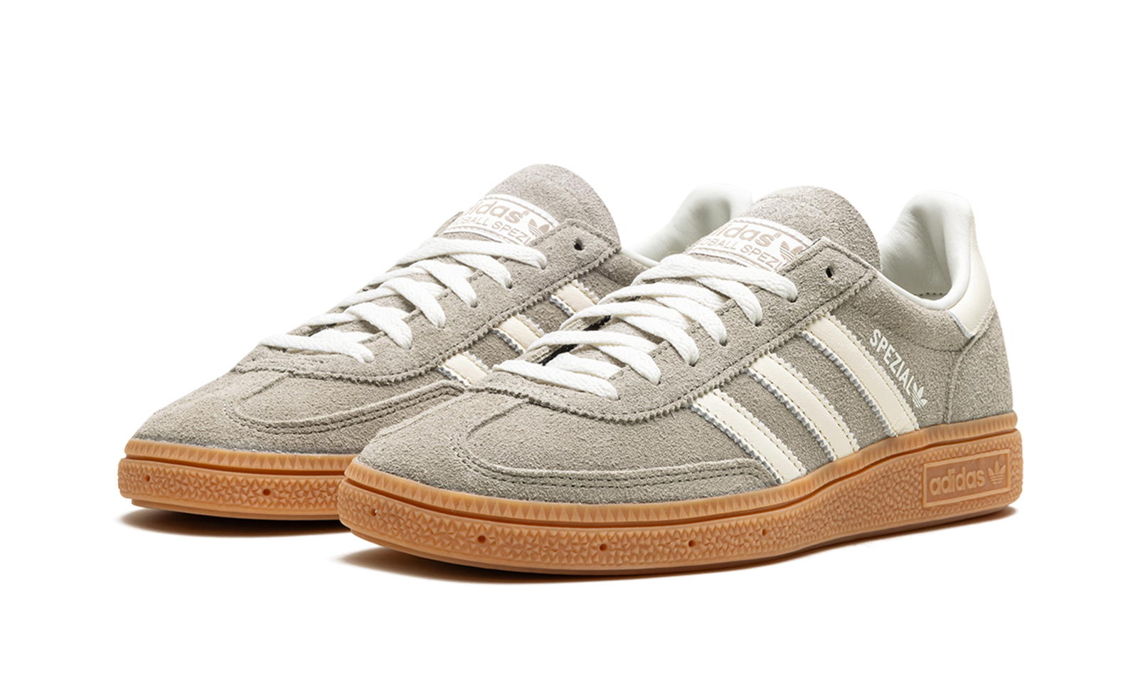 The Women’s adidas Handball Spezial “Silver Pebble” is a versatile, grey-based colorway of the casual sneaker. The upper is complete with a Silver Pebble hairy suede construction and Off White leather Three Stripes branding. Classic-looking Off White “Spezial” detailing can be found on the lateral side of the mid-panel. An Off White leather heel tab appears on the back of the shoe. “Adidas Spezial” branding is seen on the tongue. Underfoot, a gum rubber sole puts the finishing touches on the design.