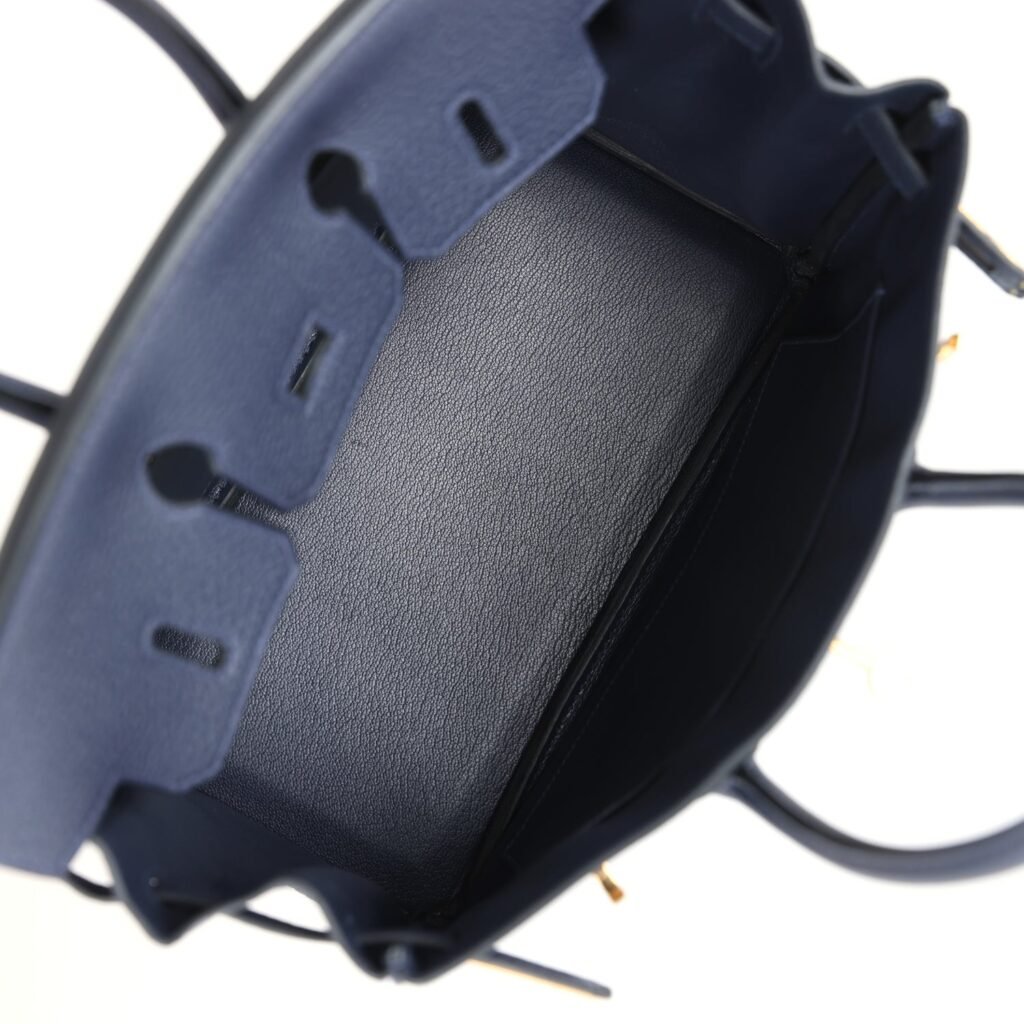 The interior is lined with black chevre and has a zip pocket with an Hermès engraved zipper pull and an open pocket on the opposite side.
