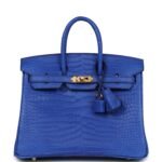 Hermes Birkin 25 Bleu Royal Matte Porosus Crocodile Gold Hardware