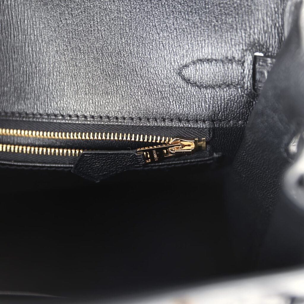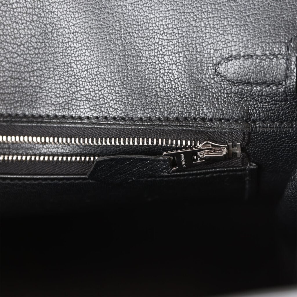 The interior is lined with Bleu Royal chevre and has one zip pocket with an Hermès engraved zipper pull and an open pocket on the opposite side.
